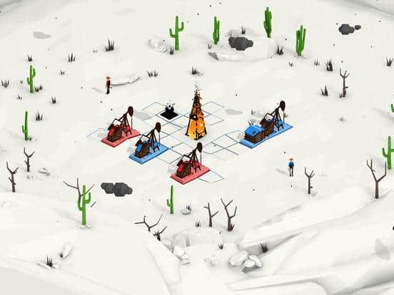 OIL – захоплююча стратегія для IOS, в якій ви опинитеся в 1900-й рік, де будете добувати нафту. У цю гру можна грати зі своїм другом на одному пристрої, проти комп'ютера або з гравцями зі всього світу. Кидайте виклик опонентові і починайте встановлювати вишки з видобутку нафти як можна швидше і змагайтеся за одну і ту ж нафту. Розробляйте свою стратегію гри і доведіть хто кращий нафтовик в цій грі. У грі представлено 18 рівнів, 3 рівня складності і красивий саундтрек. Гра порадує вас простими елементами управління і мінімалістичною графікою.