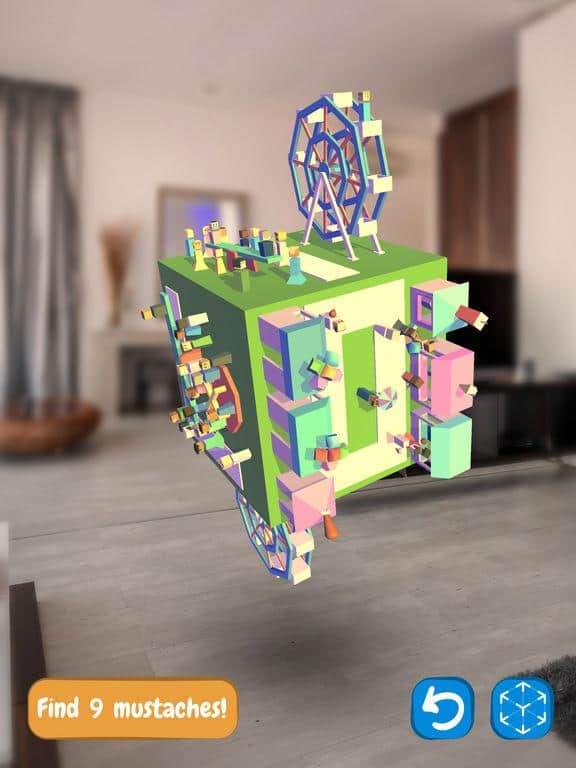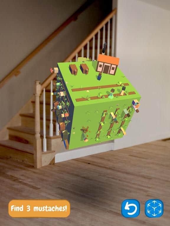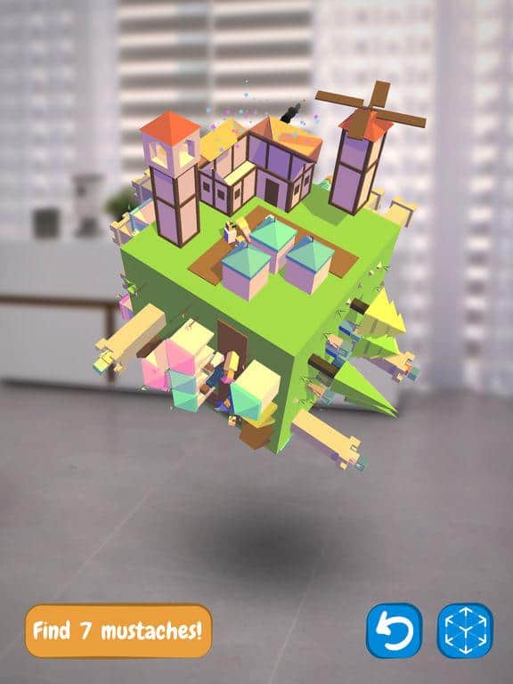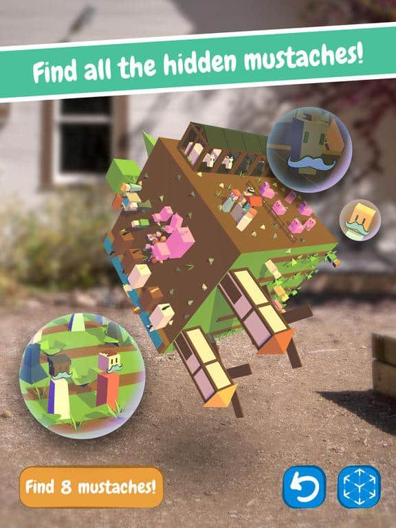 Find the Mustache – захоплююча головоломка для IOS, де ви будете шукати вуса. Ця гра відмінно підійде для всієї родини, де ви з допомогою додаткової реальності зможете перемістити гру в свій світ. У цій грі вашою головною задачею буде досліджувати цікавий і неповторний світ, і шукати всі вуса. Знаходьте вуса в найнесподіваніших місцях і обертайте світ на 360 градусів, щоб дослідити її повністю. Пройдіть всі 16 неповторних рівня і знайдіть всі заховані вуса. Розташування усов буде змінюватися кожного разу, коли ви будете починати гру спочатку.