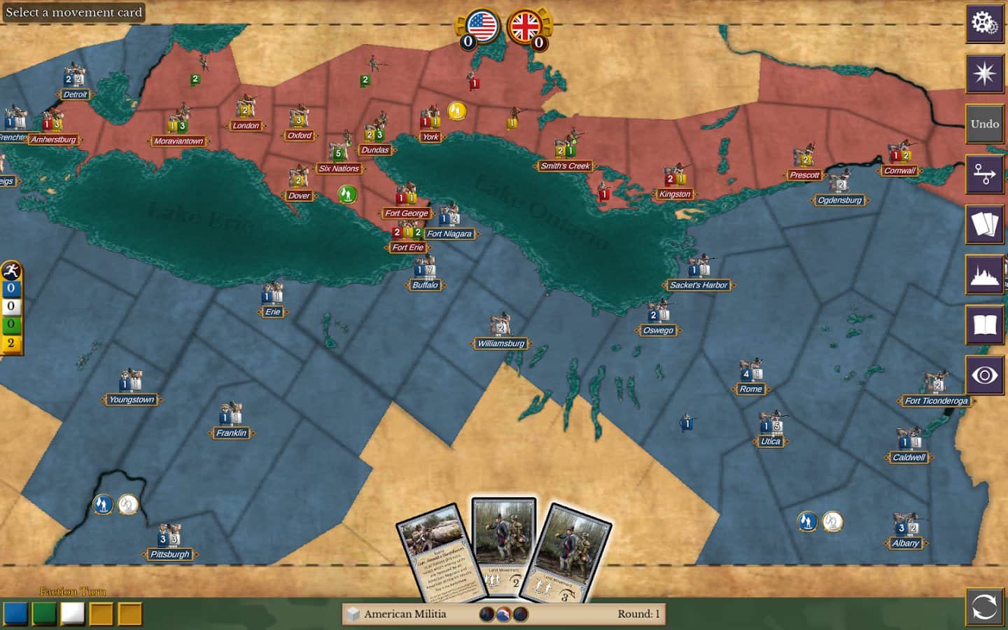 1812: The Invasion of Canada - Йшов 1812 рік йшла війна між США і Великобританією, ось тут то і ви вступите на поле дій. Головною особливістю тієї гри є те, що всі гравці ходять по черзі, і вам належить розробити свою стратегію і тактику заради перемоги, до того ж вам потрібно буде утримувати свою армію, наймати нових бійців і управляти всіма містами одночасно. Станьте справжнім полководцем і керуй цілою армією і країною.