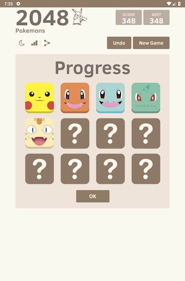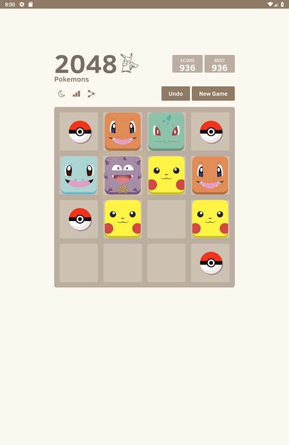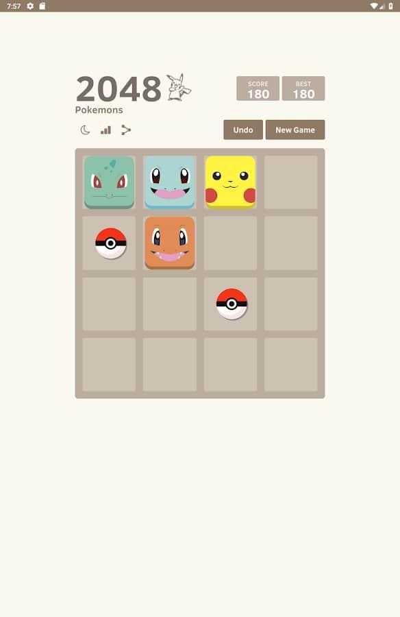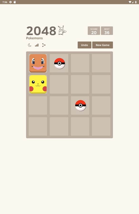 2048 Pokemons – захоплююча головоломка на андроїд, де ви будете з'єднувати однакових покемонів і збирати свою колекцію персонажів. Переміщайте плитки з покемонами по ігровому полю і поєднуйте однакові з них отримуючи нові види покемонів. Поєднуйте між собою покеболы і хапайте Пікачу, а також Чармандера. Зберіть свою неповторну колекцію покемонів і досягнете найкращих результатів змагаючись з друзями. Грайте в цю гру в будь-який вільний час і весело проводите його.