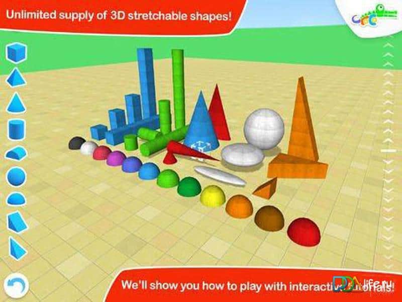 3D Sketch and Stretch Studio - яркие и занимательные игры для детей. Увлекательный конструктор, в котором вашему ребенку предоставлены предметы разных форм и цветов - огромное поле для фантазии и шедевра строительства! Купола, пирамиды, кубы, сферы, овалы и пр. Своего рода дизайнерская школа-студия, в которой из предметов для одного строения можно сделать абсолютно другой предмет для другого строения. Вытягивайте, сплющивайте, складывайте и вытаскивайте. Используйте всю палитру красок, объединяйте предметы, сохраняйте и редактируйте, вращайте на 360 градусов! Творчество в любом направлении и на всякий вкус!