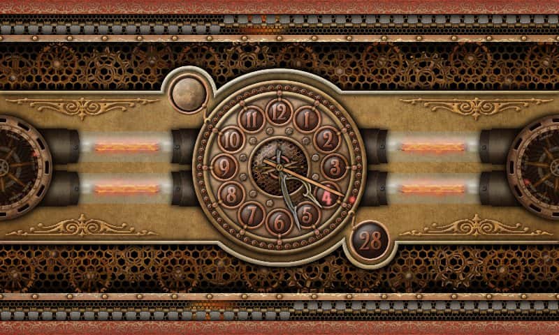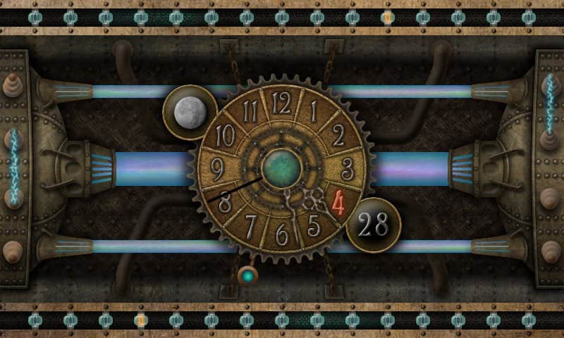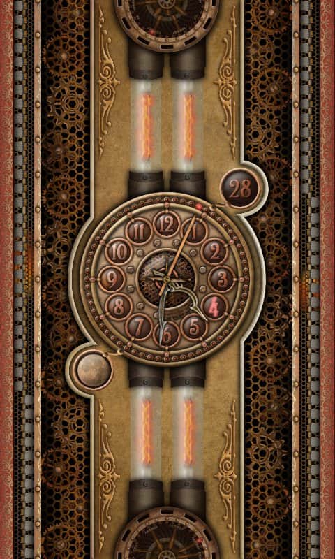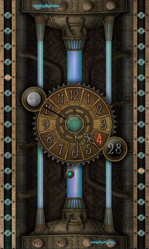 5 Clocks live wallpaper – першокласні живі шпалери для андроїд з годинником, які мають 5 різних тем: шестерні, насоси, плазма та інші. Всі годинники мають фази місяця і показник дня місяця.