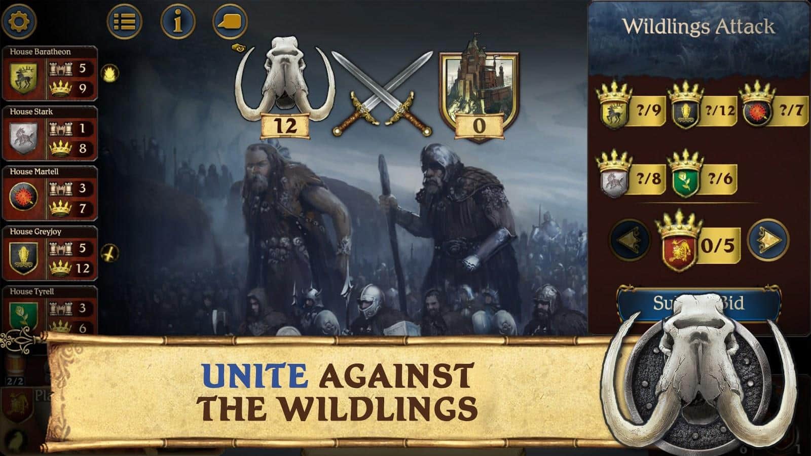 A Game of Thrones: The Board Game - покрокова стратегія на Андроїд у Всесвіті Гри престолів, заснованої на серії романів Г.Р. Р. Мартіна «Пісня льоду і полум'я». Боріться за корону, граючи за один з 6 Великих будинків: амбітні Ланністери, стійкі Старки, хитрі Мартелли та інші будинки. У цій роздирається війною країні, де укладаються і розриваються союзи, б'ються армії, а королівський двір сповнений змов. Підкорюйте фортеці і замки, щоб зміцнити свої права на трон, але остерігайтеся своїх сусідів. Чи зможете ви встановити своє панування і забрати собі корону? Зберіть свої війська, сплануйте свій наступний крок, щоб зробити набіг на ворожі лінії і завоювати території.
