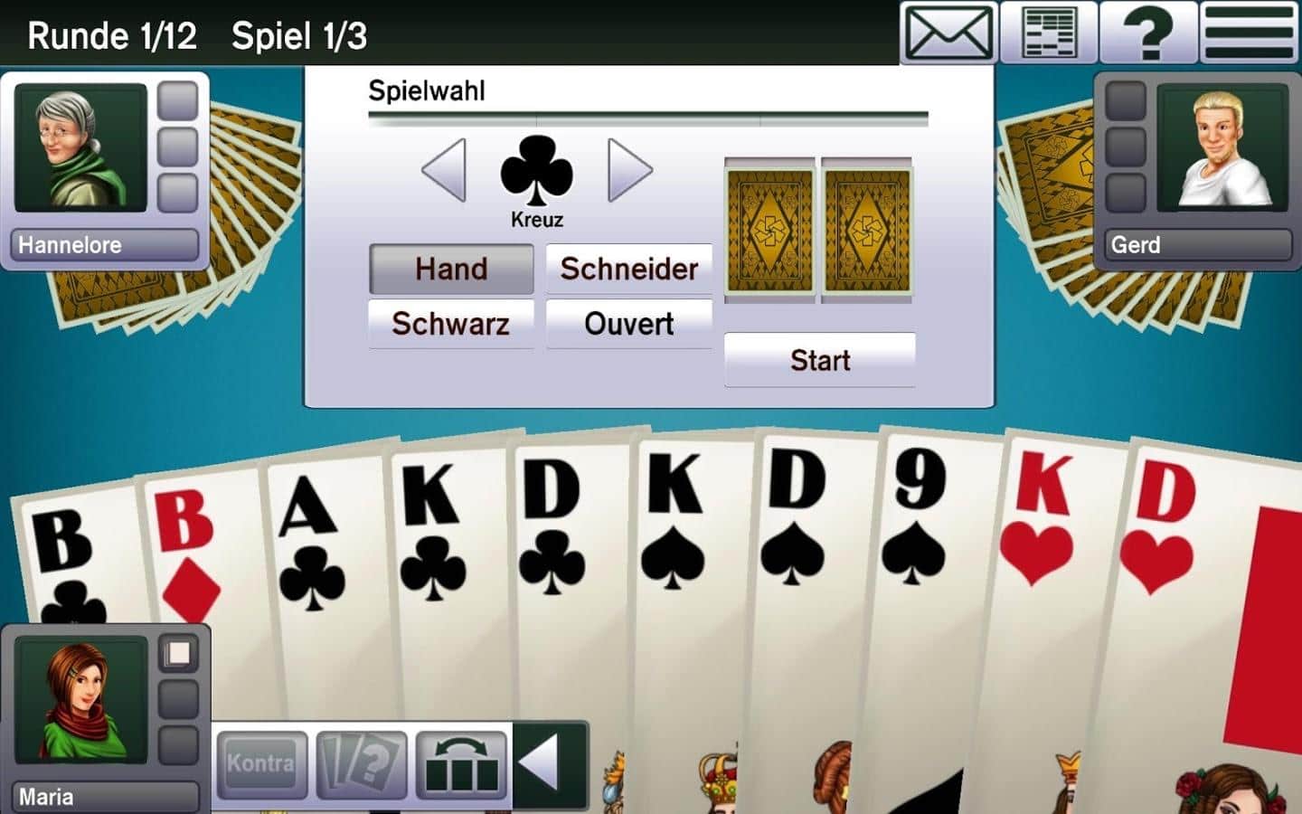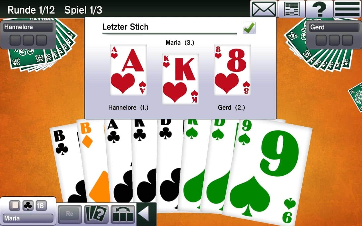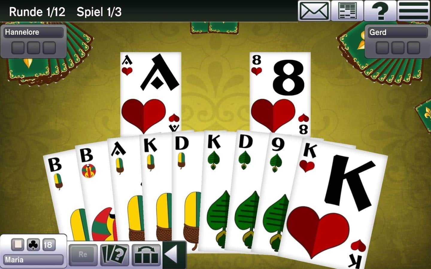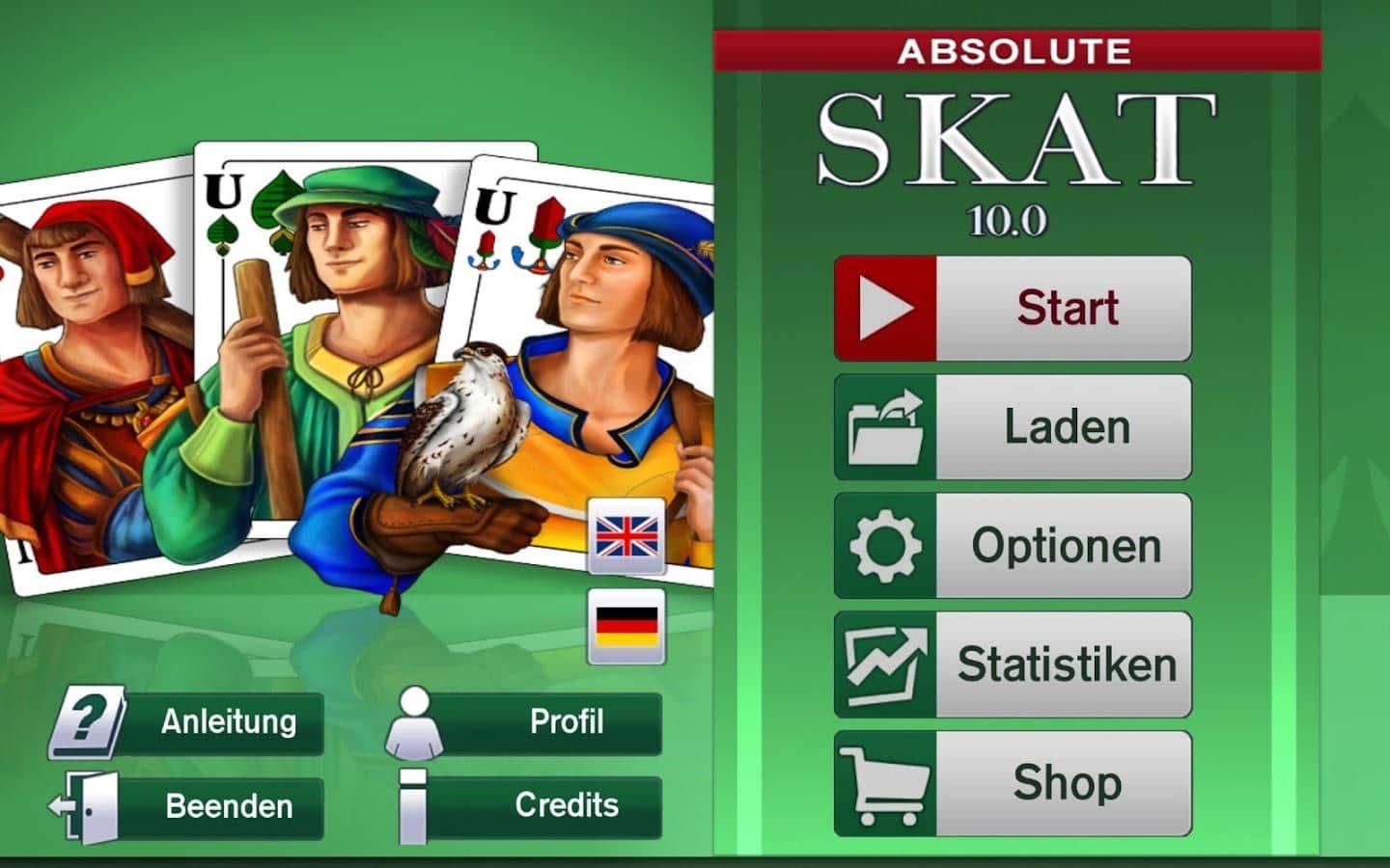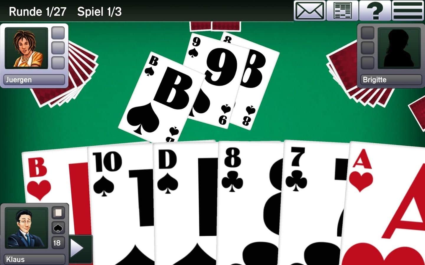 Absolute Skat 10 – відмінна карткова гра на андроїд, де ви будете грати в знамениту гру Скат. В цю гру одночасно можуть грати до чотирьох чоловік, де вашим головним завданням буде набрати максимальну кількість очок. Розкладайте карти на ігровому полі і беріть участь в торгах, при цьому роблячи максимально можливі ставки. Ця карткова гра дуже поширена в Німеччині і в США.