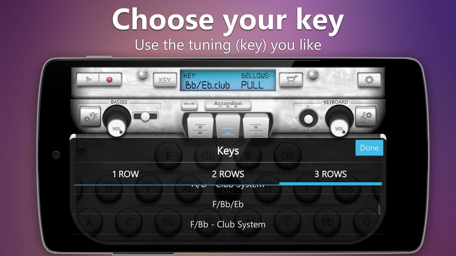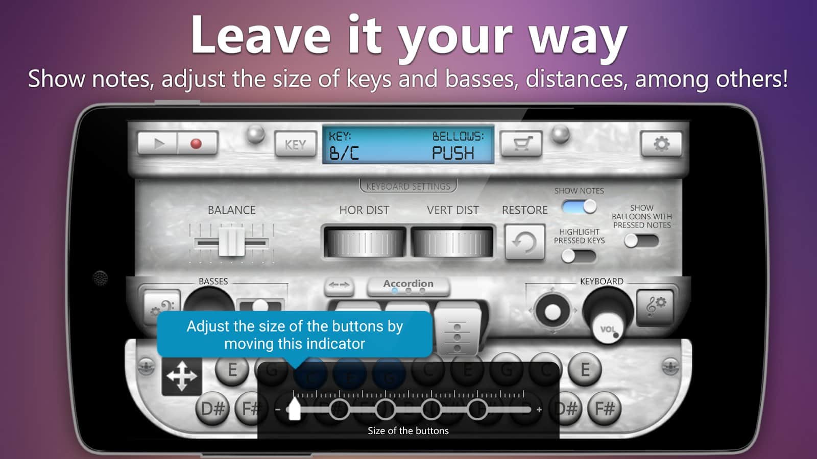 Accordion Diatonic дозволяє створювати унікальні мелодії акордеонів за допомогою різних інструментів:
