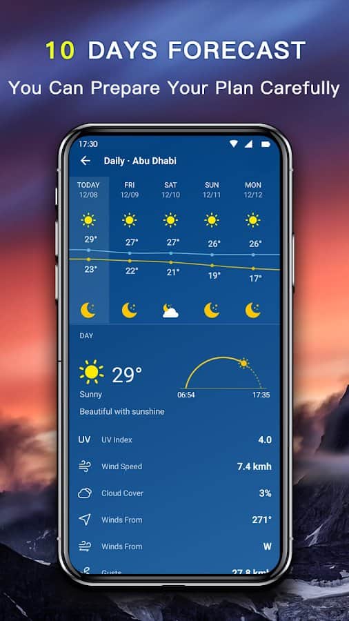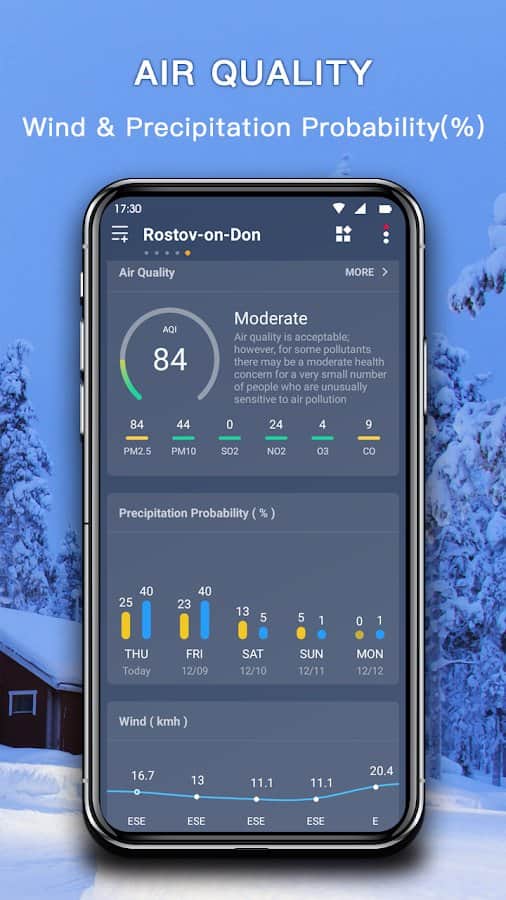 Accurate Weather App PRO - це повна версія дуже добре розробленого додатка про погоду. Користувачі отримують всі основні функції та можливості, а також відсутність будь-яких обмежень. Це робить продукт оптимальним вибором для людей, які хочуть бути в курсі ситуації за вікном, правильно оцінювати короткострокову перспективу при виборі одягу, а також планувати свої справи з великою впевненістю на майбутні дні та тижні завдяки точному аналізу доступних даних з різних джерел. Крім того, до переліку позитивних якостей цього програмного забезпечення відносяться приємний інтерфейс, зручна настройка бажаних параметрів роботи та інші фактори.