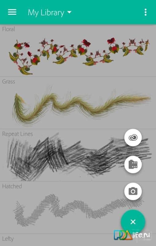 В качестве дополнения к обновленному фотошопу на андроид, Adobe выпустила приложение для создание кистей. Они создаются из пользовательских фотографий, причем никаких ограничений по тематике, стилистике или количеству кистей нет. Теперь создавать шедевры можно прямо на экране вашего смартфона или планшета. Есть у прграммы и другое применение. Созданные здесь кисти позже можно без проблем использовать в полноценных версиях Photoshop CC, Illustrator CC или Photoshop Sketch. Интерфейс программы выполнен в том же стиле, что и другие продукты Adobe, так что, если вы работали хоть с одним из них, то и здесь проблем не возникнет.