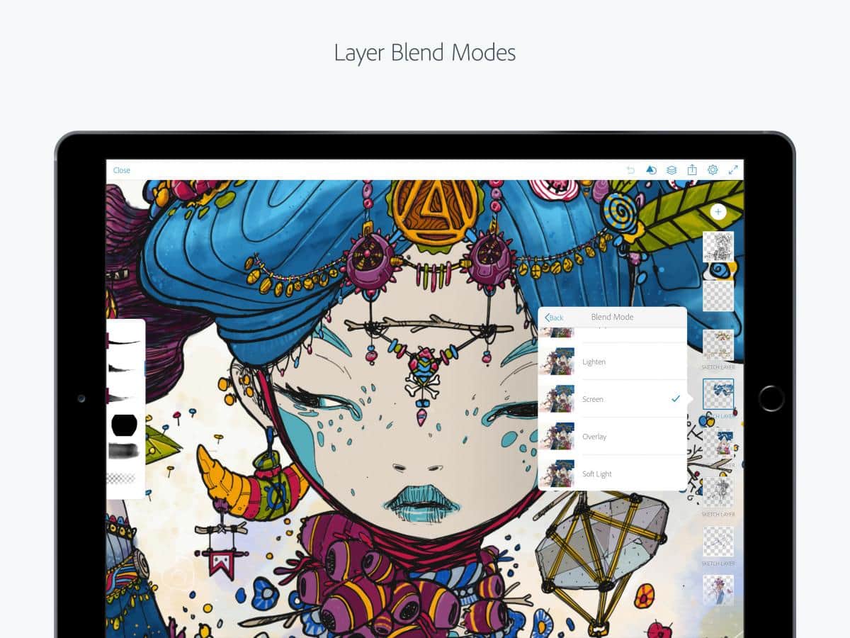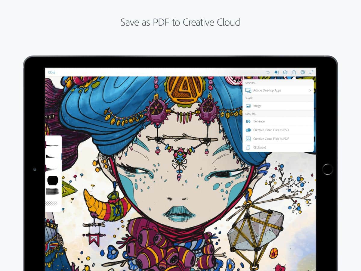 Оскільки ми говоримо про продукт сімейства Adobe, ще однією серйозною перевагою є інтеграція з “настільними" Illustrator CC або Photoshop CC і підтримка інструментів, створених в Adobe Brush CC Adobe Color CC і їм подібним.