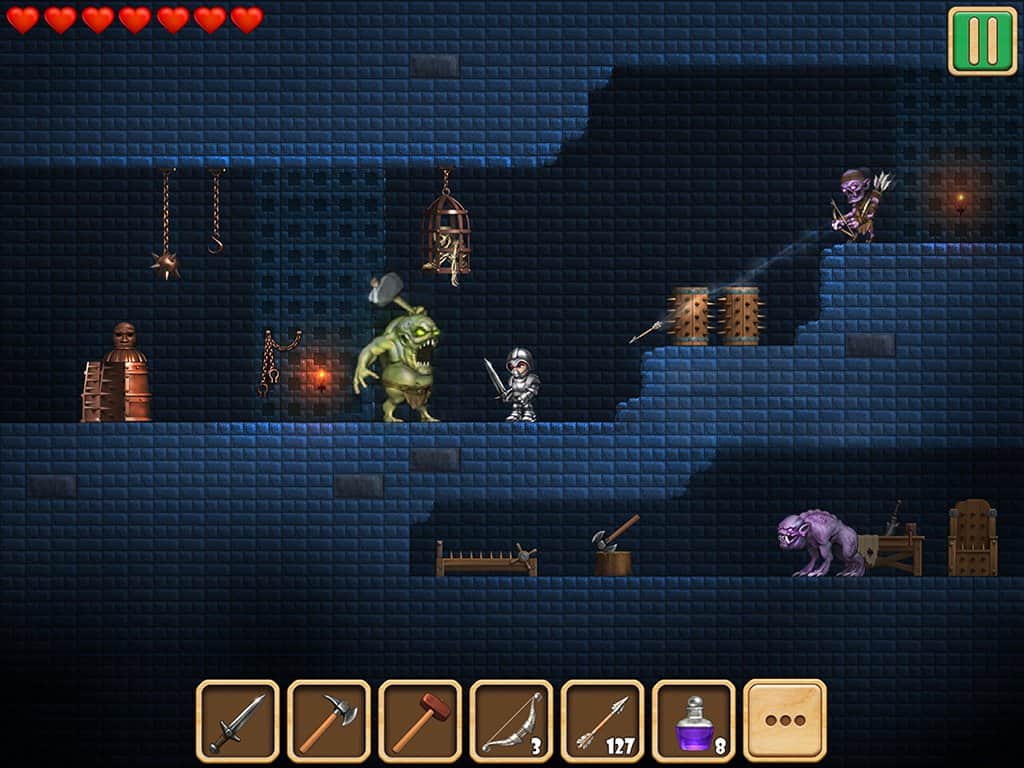 Adventaria: 2D World of Craft & Mining – пригодницька гра на андроїд, де ви відкриєте для себе необмежений світ. У цій грі вашим завданням буде подорожувати по небезпечного світу і виживати, борючись з мобами і босами. Таких жахливих і численних ворогів ви ще не бачили ні в одній грі: зомбі, скелети, демони, перевертні, големи, чарівники, виверны, боси вб'ють вас при першій же можливості, якщо ви не будете захищатися. Дослідіть небезпечний світ гри і займайтеся пошуком кілець, які дозволять вам регенеруватися, підвищувати здоров'я і стати невидимим.