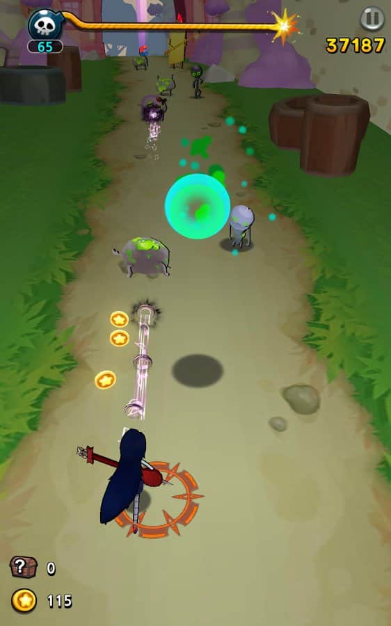 Adventure Time Run – раннер для андроїд, де ви знову зустрінетеся з вже знайомими вам героями знаменитого мультфільму. У цій грі ви будете керувати Фіном або будь-яким іншим героєм, який бігає по численних барвистих локаціях і збирає по дорозі численні бонуси і посилення. Почніть свою пригоду прямо зараз і насолоджуйтеся захоплюючими діями і динамічним ігровим процесом. Допоможіть головному героєві гри відшукати усі чарівні камені та збільшуйте його по ходу гри. Грайте зі своїми друзями і добийтеся рекордних результатів у цій грі, стаючи найкращим бігуном в світі.