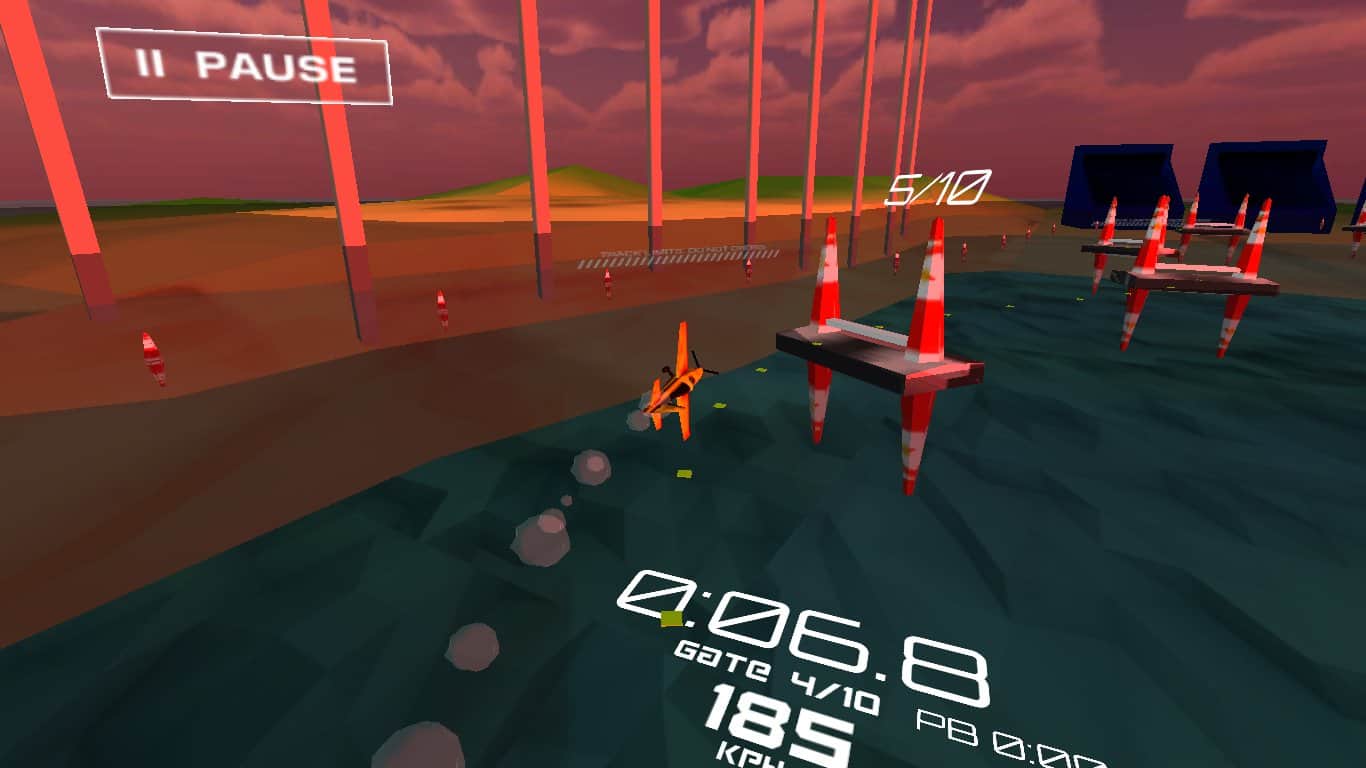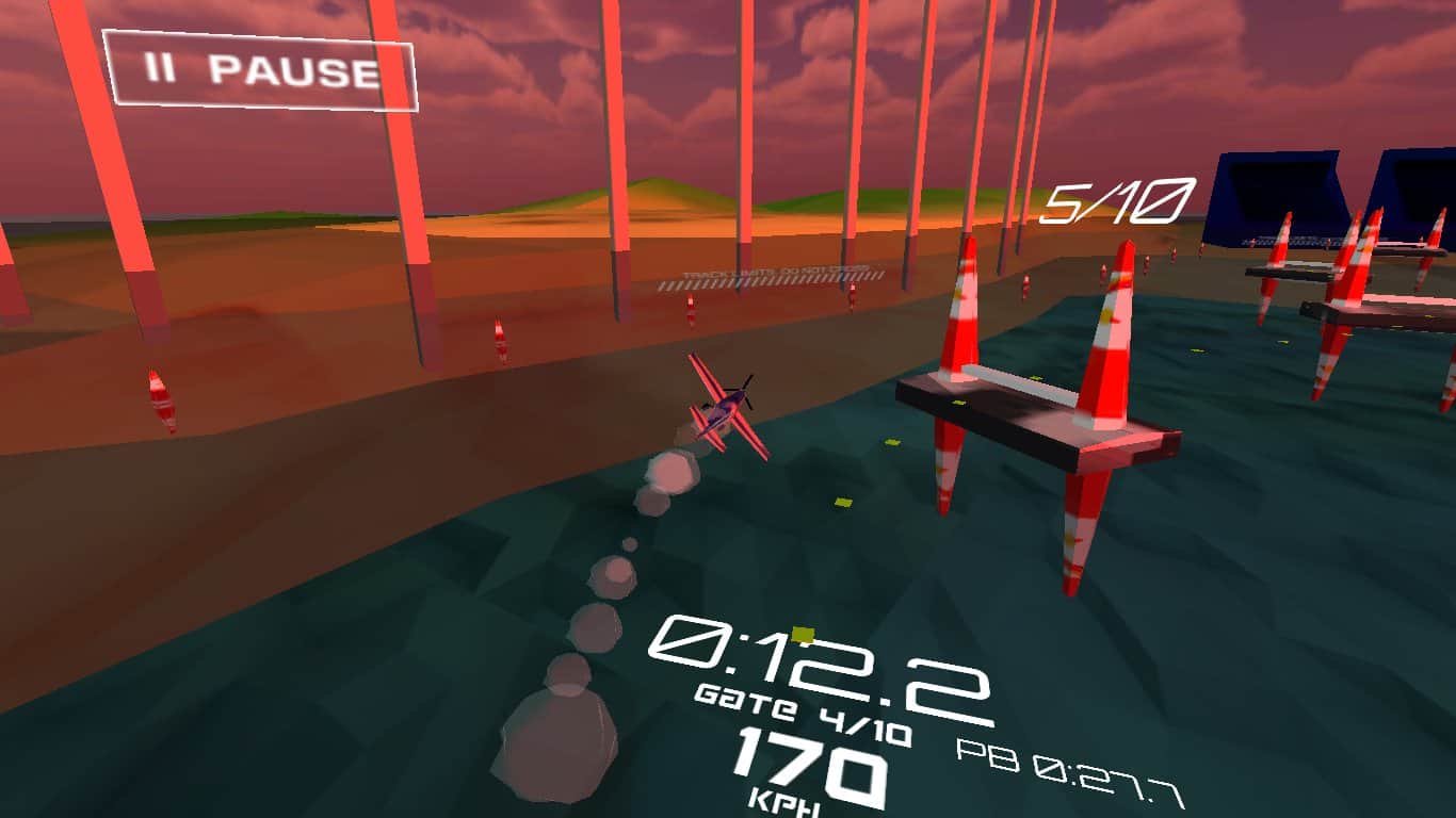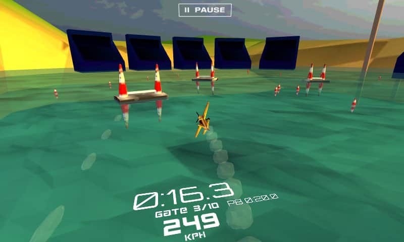 Air Racing - Оживленные трехмерные андроид гонки на самолетах по трассам между конусами. Пройдите трассу как можно скорее, покажите лучшее время, маневрируя между препятствиями. Чтобы оказаться на первом месте, вам предстоит пролететь отметки, правильно оценить угол наклона крыльев, тем самым определить ваш угол пикирования. В игре красивая трехмерная графика с хорошей отрисовкой как самолетов, так и окружающего мира.