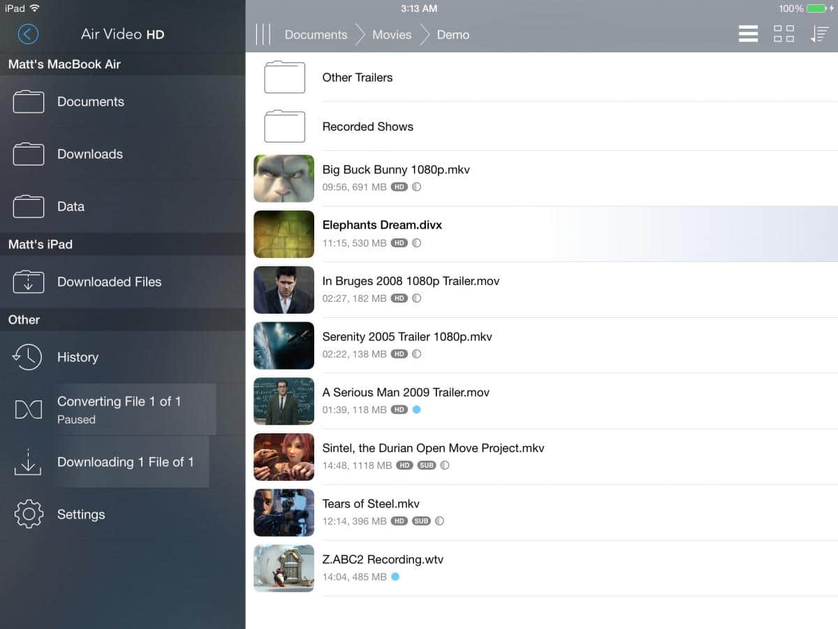 Air Video HD - відмінний звичайний відеоплеєр дозволяє дивитися ваші улюблені відео ролики на iPhone, IPod Touch або iPad. Підтримує такі поширені формати як: AVI, DivX, MKV та інші. Пильніш підтримує більшість форматів і здатний виконувати перетворення відео в режимі реального часу. Якщо ви хочете дивитися відеоролик тільки на вашому пристрої, тоді додаток перетворює його в потрібний для вас формат. Ні яких складних налаштувань в програмі немає, все легко і доступно. Також плеєр підтримує плейлисти iTunes, що так само дуже зручно і просто.