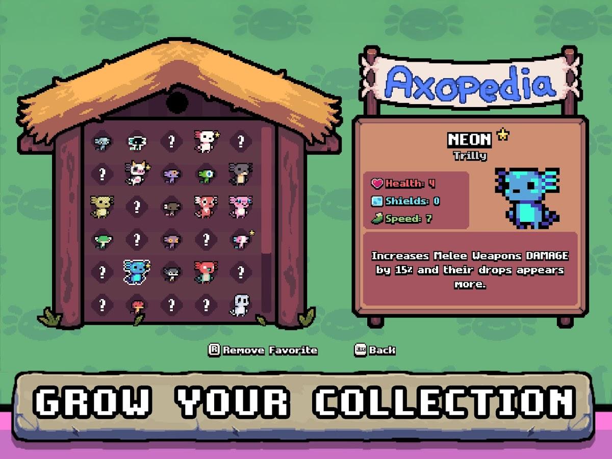 Вибухова суміш милоти та хаосу — ти озброєний аксолотль, який готовий навести лад у безумстві. Пробивайся крізь орди ворогів, використовуючи різноманітну зброю та здібності, щоб урятувати своїх малюків і зібрати армію. Кожен забіг унікальний завдяки процедурно згенерованим біомам і босам, а динамічний геймплей вимагає швидкої реакції й стратегічного мислення. Збирай покращення, вирощуй нових бійців і насолоджуйся піксельною графікою з драйвовим саундтреком. Чи готовий ти стати найнебезпечнішою амфібією?