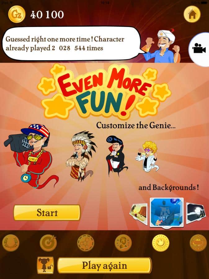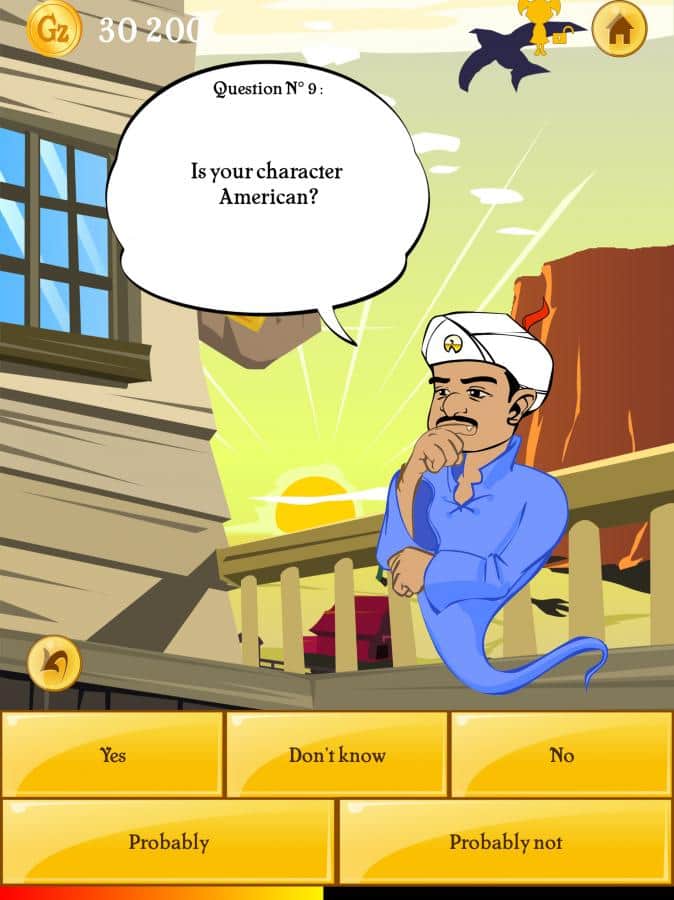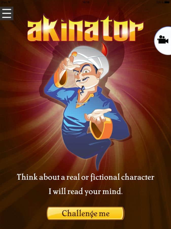Akinator Genie – захоплююча гра для iOS, де чарівний джин буде вгадувати все, що ви задумали. Вибирайте будь-якого персонажа, будь то живий чи казковий персонаж і з допомогою простих запитань, на які вам слід відповідати, Акінатор відгадає все, що ви задумали. Встановивши цю гру в свій телефон або планшет ви здивуєтеся наскільки мало потрібно часу джину, щоб відгадати будь-якого задуманого вами героя. Спробуйте обдурити Акінатора або битиметься з ним в кмітливості. Єдиною умовою буде те, що б у вас був доступ до інтернету, щоб джин зміг використати свою чарівну лампу.