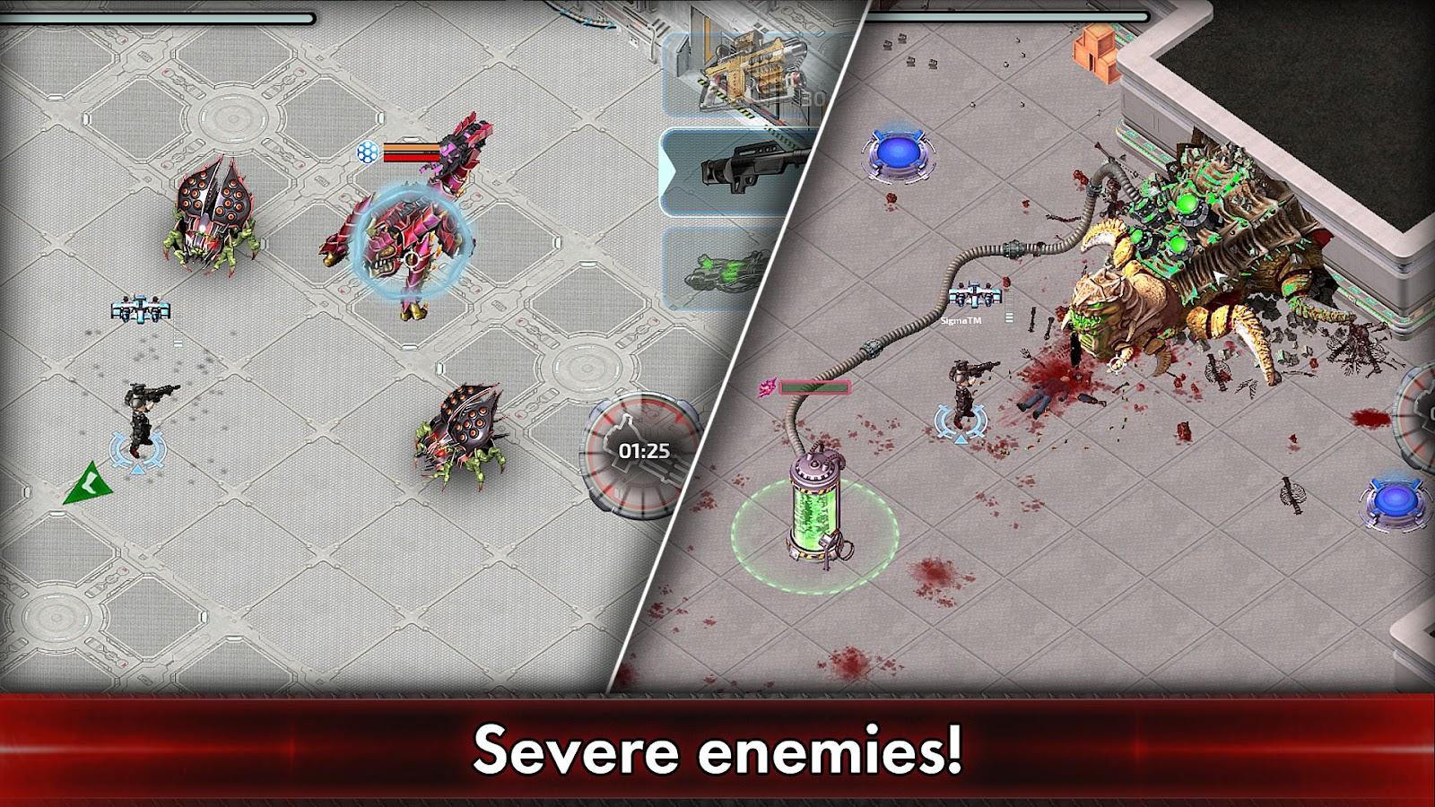 Alien Shooter – знаменитий екшен шутер від компанії Sigma дістався до Android-платформи. Вам належить бій на закинутому військовому комплексі проти натовпів інопланетян. Ваше завдання – зачистити базу. Виберете собі відповідне зброю і виступайте! Вас чекають 10 захоплюючих рівня з самими різноманітними монстрами. На цих рівнях збирайте гроші і купуйте нову зброю, а так само патрони.