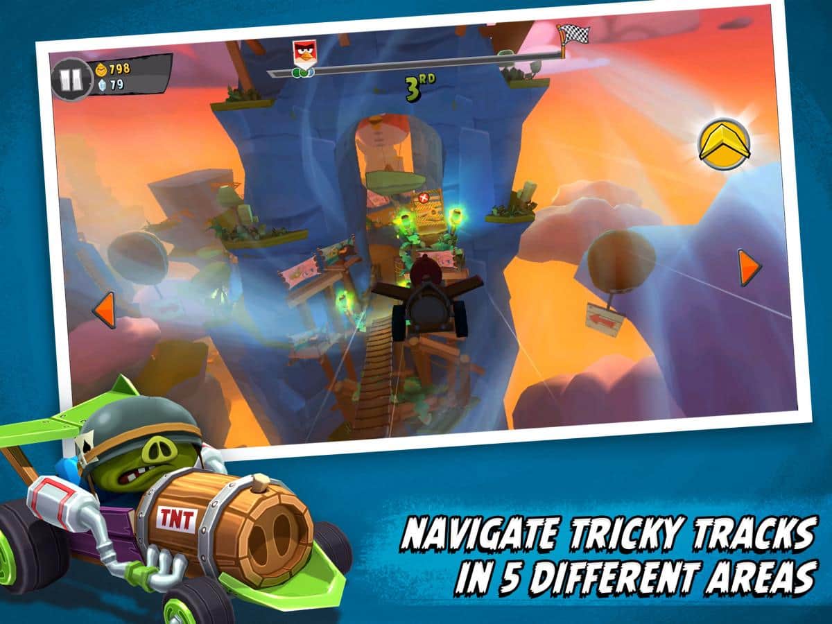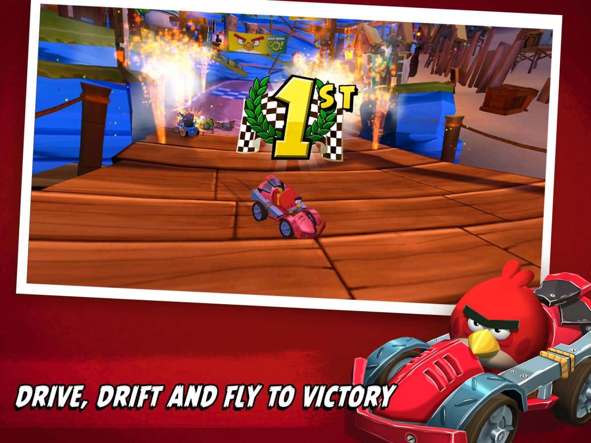 Angry Birds GO! на iOS - захоплюючі гонки за участю відомих злих пташок! Адреналін, круті віражі, повороти і швидкість! Покращуйте своє авто, уникайте перешкоди і пастки на вашому шляху, використовуйте для перемоги все, включаючи унікальні можливості кожного ігрового персонажа. Пробуйте свої сили в різних режимах гри Angry Birds Go! і будьте весь час на чеку - бонуси так і норовлять попастися вам на шляху!
