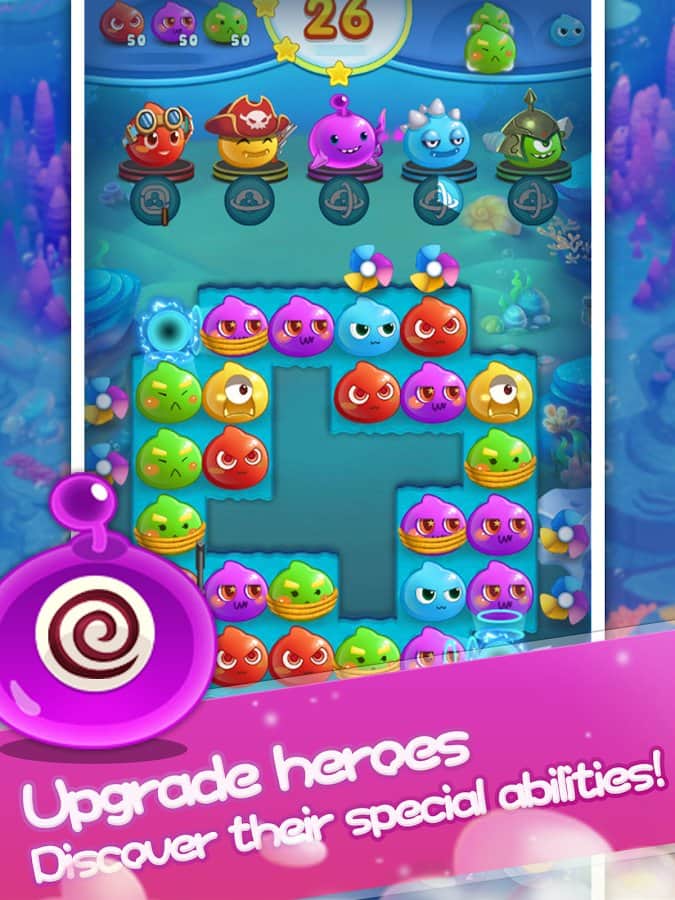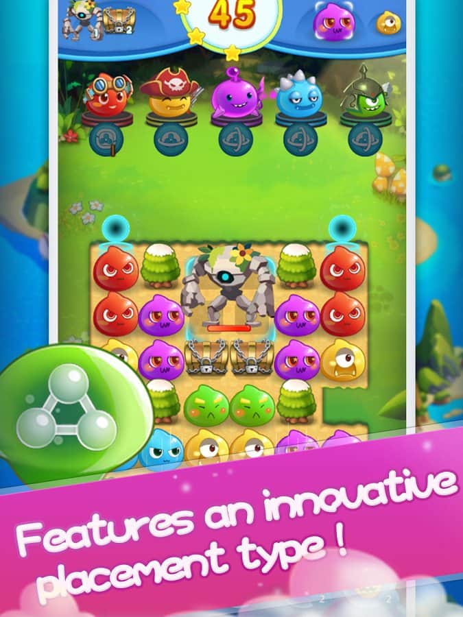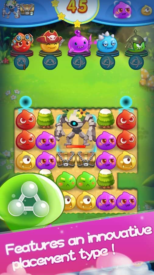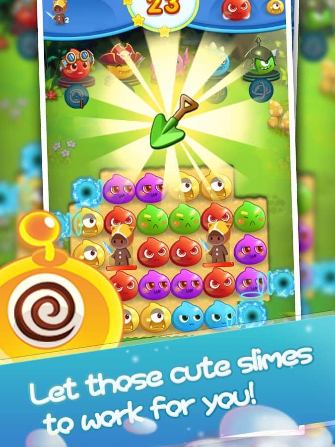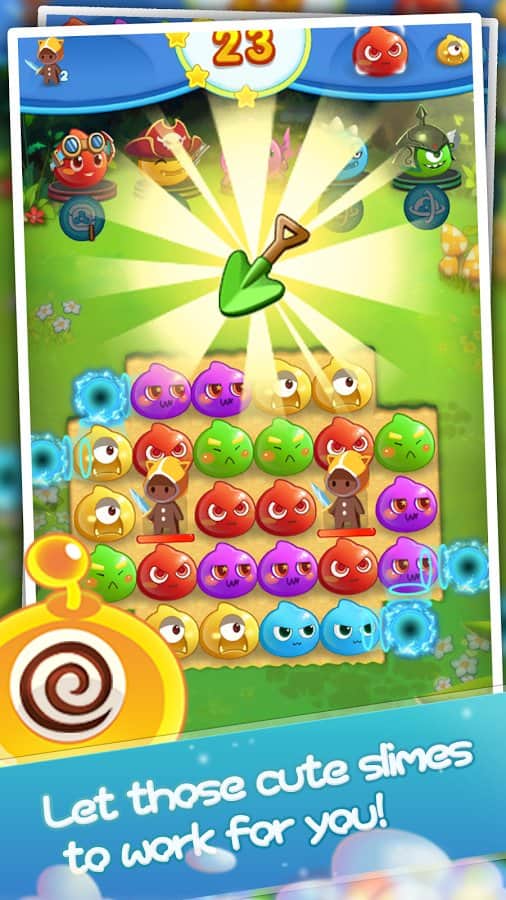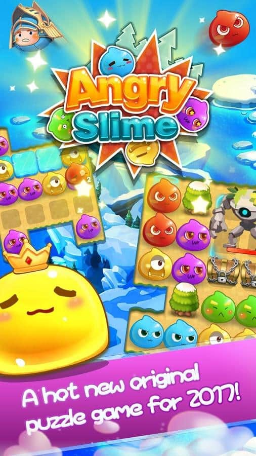 Angry Slime - New Original Match 3 – захоплююча гра з жанру три в ряд на андроїд, де ви будете з допомогою забавних героїв знищувати натовпи ворогів. Використовуйте всю свою кмітливість і логіку, щоб складати якомога довше ряди з об'єктів і підривати їх. На вашому шляху встане велику кількість ворогів, складайте ряди з героїв і знищуйте своїх супротивників. Змагайтеся з друзями за кращі результати і застосовуйте в грі численні бонуси, щоб якомога швидше пройти рівень. Гра порадує вас більш 100 рівнів, численними героями і таблиці лідерів.