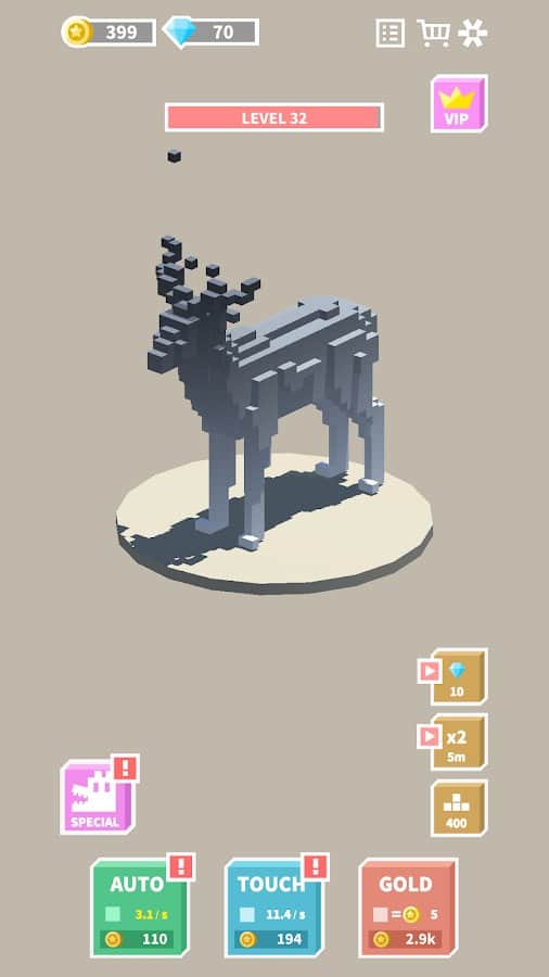 Animal Craft 3D: Idle Animal Kingdom - тапа на екран і спостерігайте, як самі створюєте динозаврів! Створіть безліч різних тварин: панд, кішок, собак, оленів, слонів, зайців, орлов, курок, лебедів, змій, мавп і динозаврів. Збирайте монети за кожен пройдений рівень і з часом купіть додаткові можливості для полегшення процесу, з допомогою яких можна швидше побудувати когось або майже нічого не робити. Гра відмінно підійде як для дітей, так і дорослих, які вирішили згадати всіх тварин в світі і вивчити нові слова англійською.