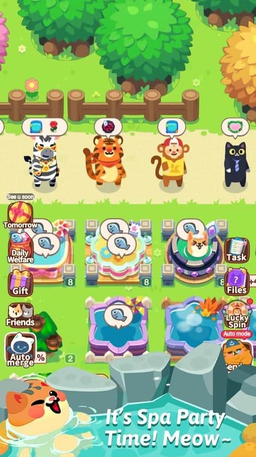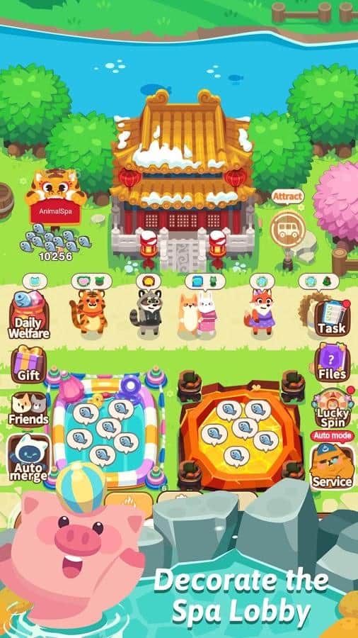 Animal Spa - Lovely Relaxing Game – це каузальний симулятор, який подарує вам приємні емоції і гарний настрій. Високо в горах, серед природи і сприятливого середовища розташувався спа-готель для тварин. Вони приходять і прилітають, приповзають туди, щоб відпочити і розслабитися, прийняти ванни, різні процедури і просто повеселитися. Співробітники готелю - кішки, я плата за процедури і сервіс – риба. Створіть свій унікальні готель, зробіть ремонт і приймайте відвідувачів. Розблокувати додаткові можливості, повісьте табличку і розширюйтесь.