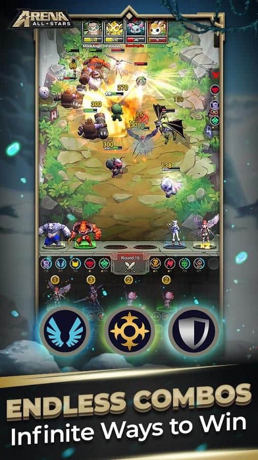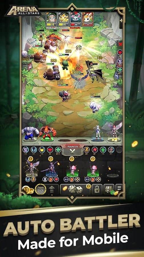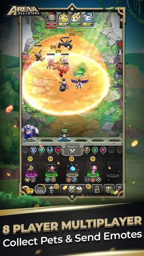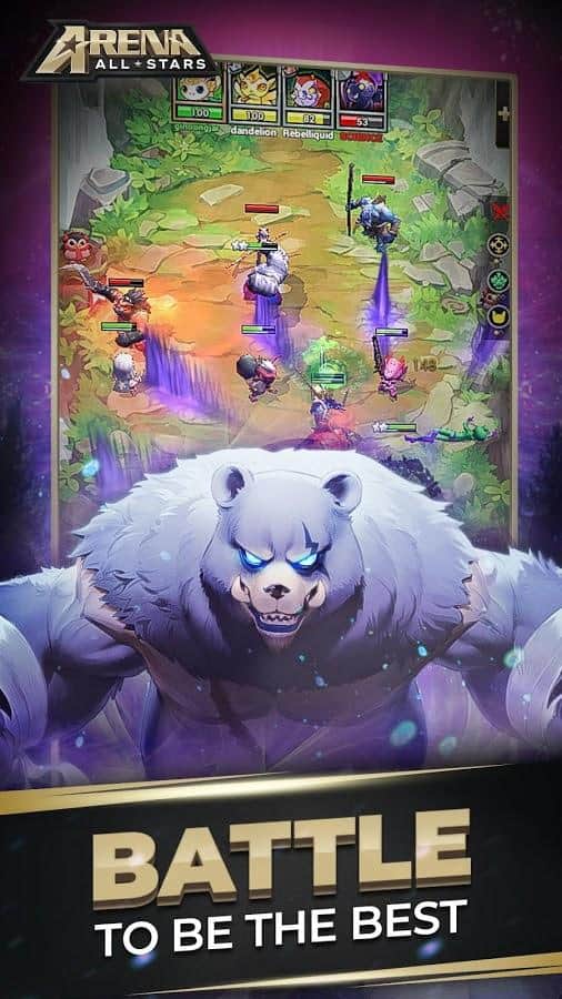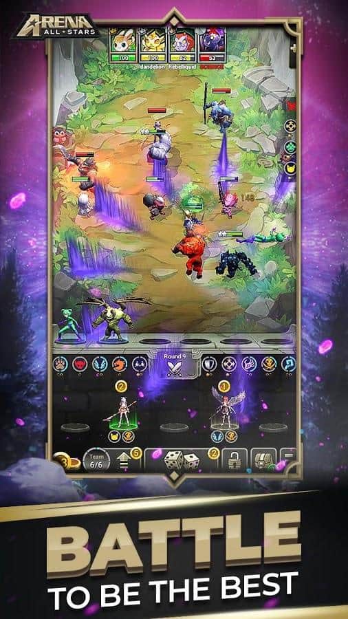 Arena Allstars - покрокова стратегічна гра на Android, в якій вам належить битися за звання кращого. Вибирайте між епічної битви в реальному часі з сімома противниками і швидким боєм. Складіть свою унікальну команду, реалізуйте добре продуману стратегію і постарайтеся вижити. Змагайтеся в щомісячних турнірах, щоб заробити призові місця в таблиці лідерів і виграти внутрішньоігровий трофей і отримати ранг вище.