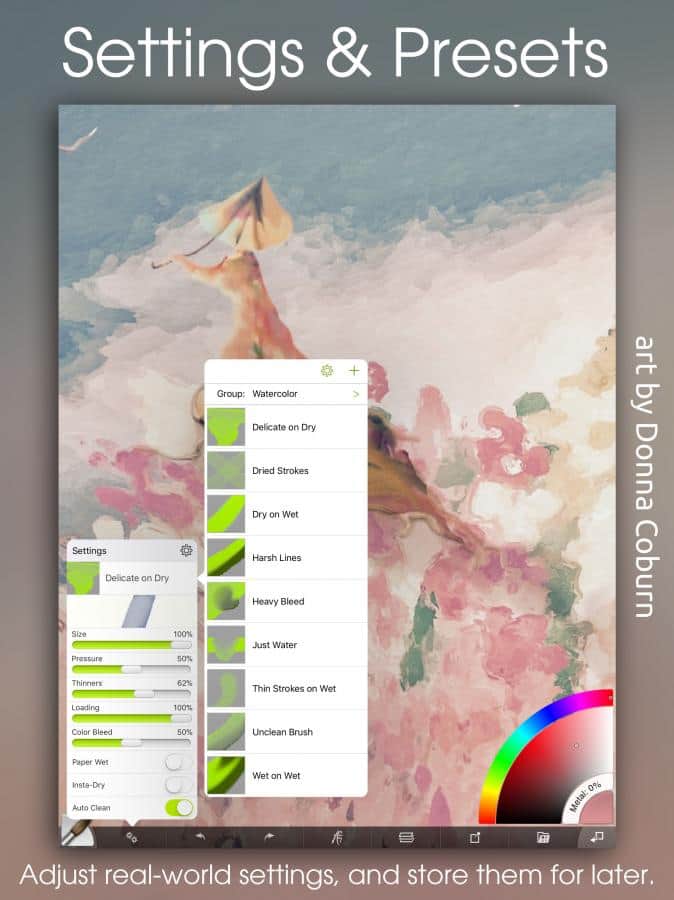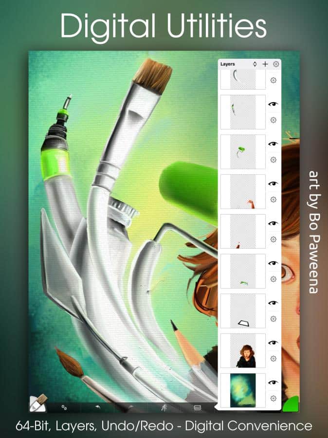 Тут передбачені інструменти, максимально наближені до реальності, причому кожен з них має набір відповідних налаштувань. Кількість шарів не обмежена, плюс передбачені різні режими змішування.