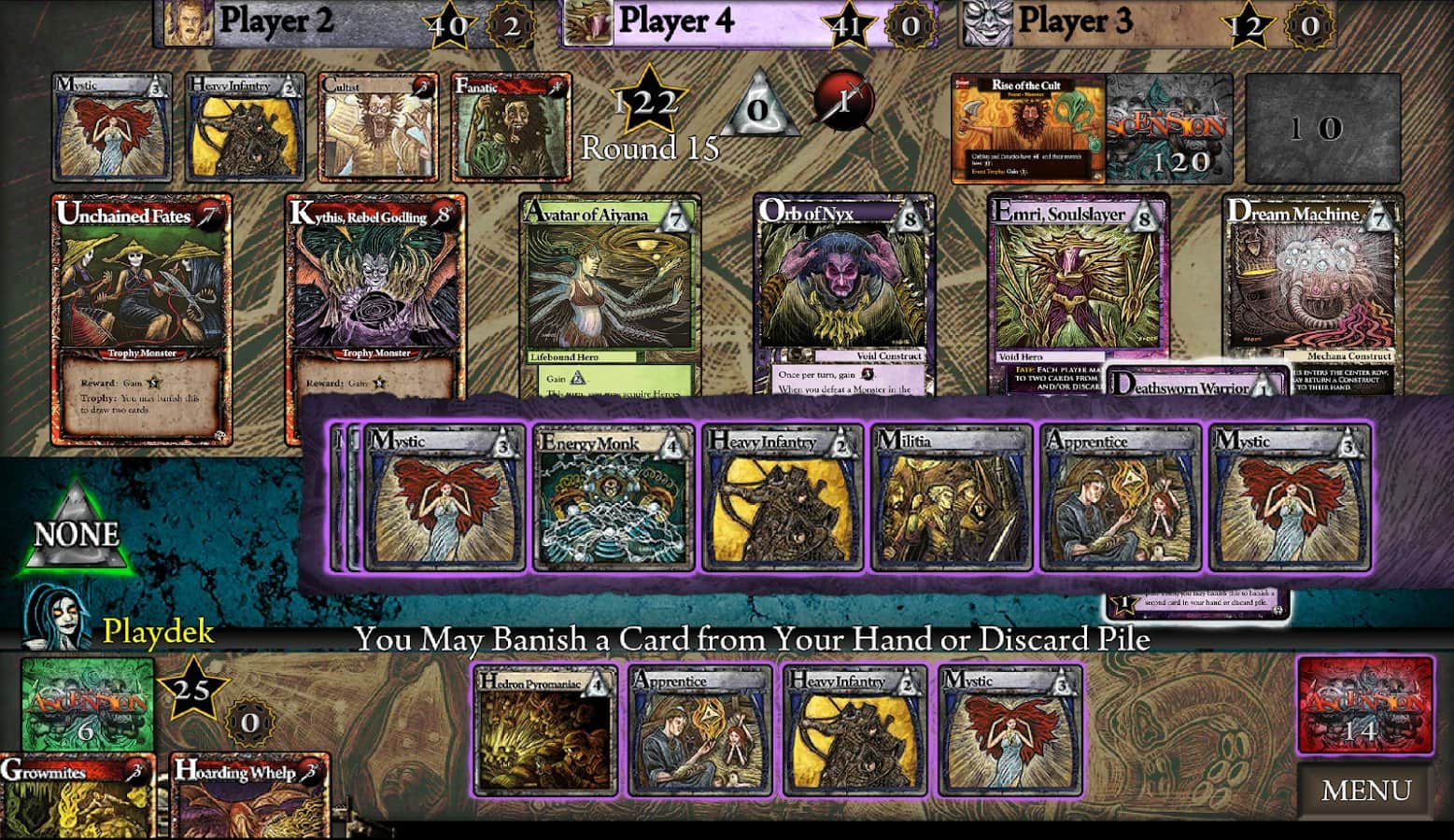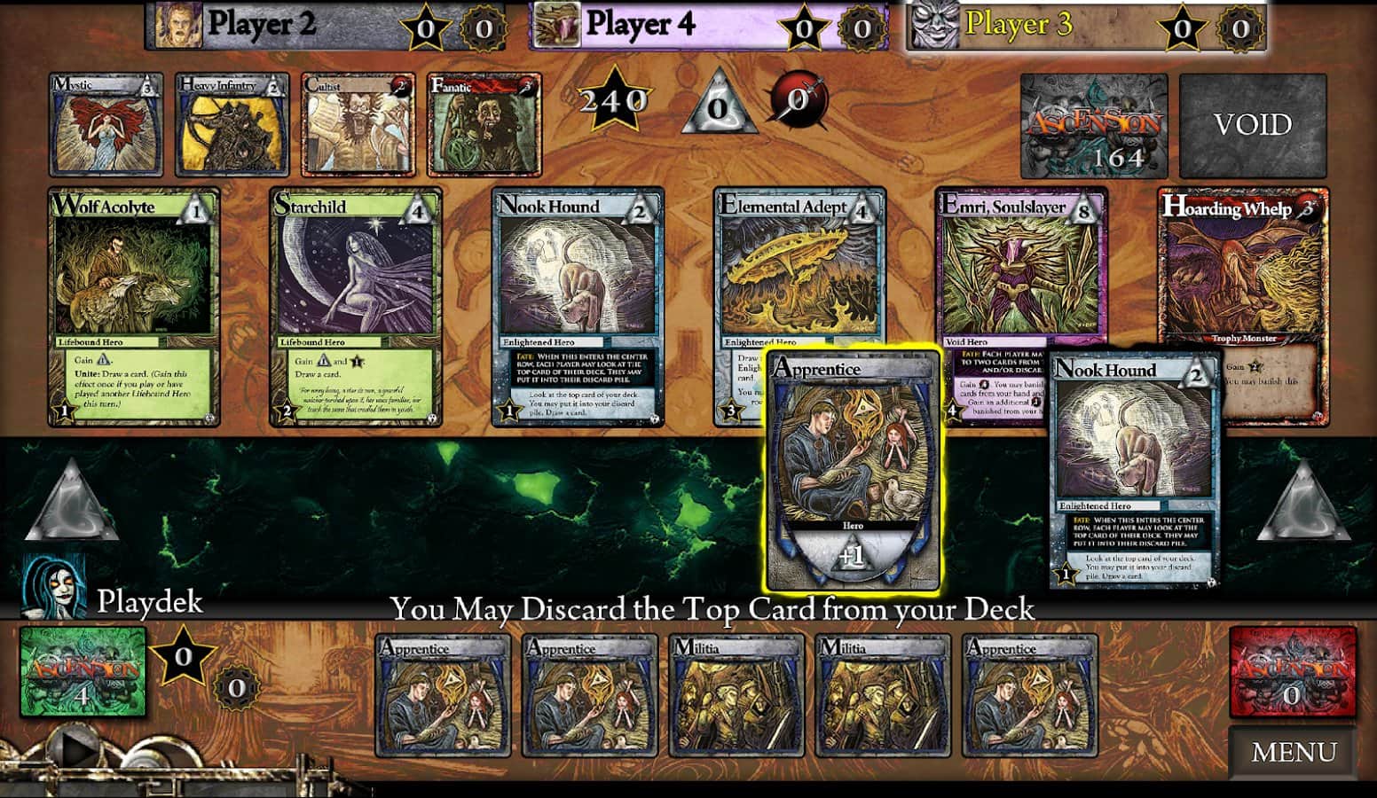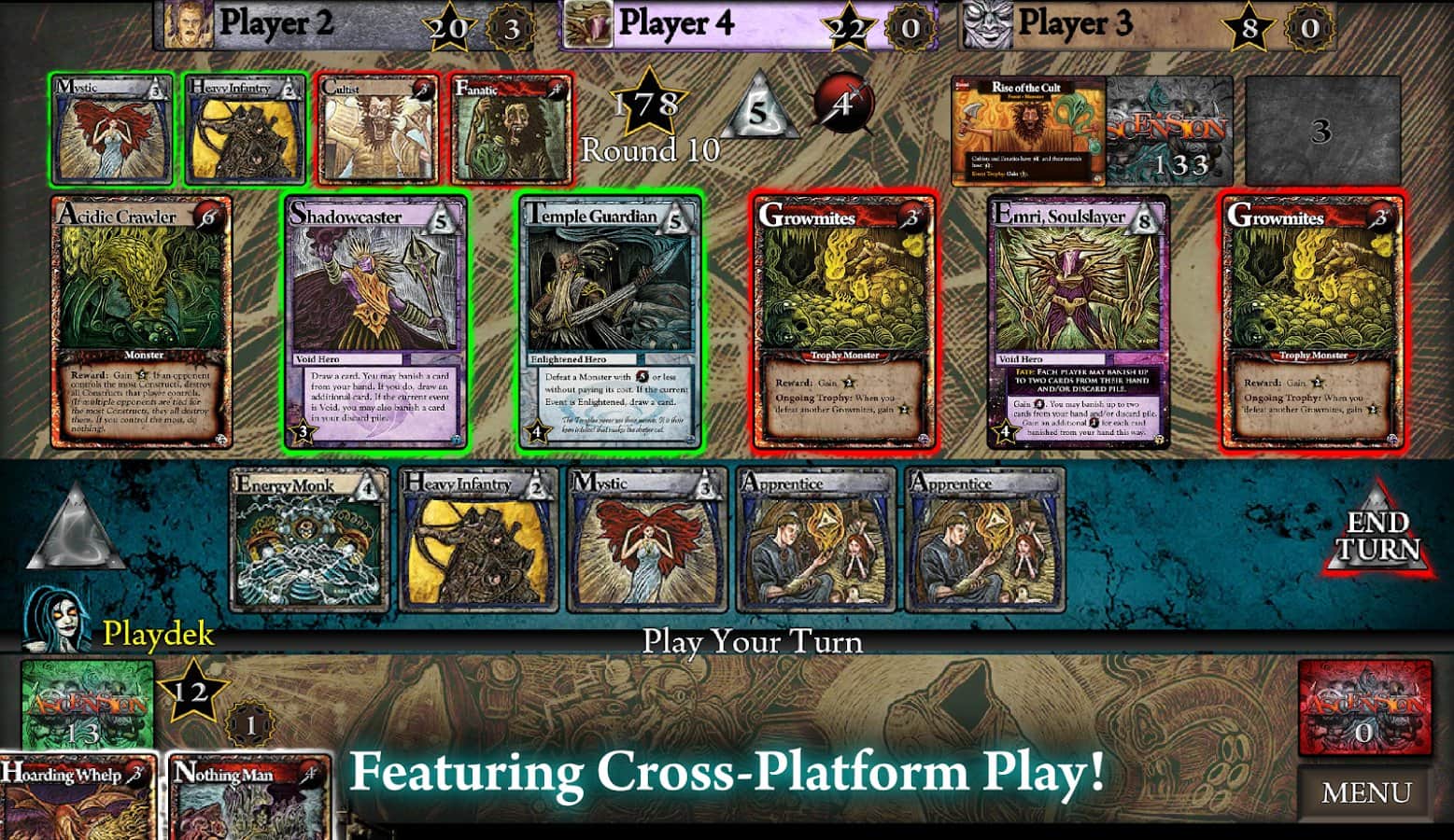 Ascension - Отличная карточная игра на андроид, которая перешла к нам с IOS. У вас есть возможность играть как в одиночную игру, так и с друзьями в режиме онлайн. Игра расскажет вам историю об одном царстве, в котором случилось несчастье. Открылся портал в потусторонний мир, и оттуда начали лезть солдаты тьмы, против которых вы и будите сражаться. Призовите силы света, и вместе с ними закройте портал.