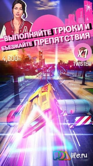 Asphalt: Погоня - якесь інше уявлення відомої гоночної серії ігор. Отже, перед вами не гонка в звичному розумінні, а швидше раннер. Каліфорнія 80-хх років, місії і завдання, апгрейд авто, система енергії та ін. Переміщайте своє авто між трьома смугами руху, тараньте інші машини і змітайте їх зі свого шляху. Якщо вам раптом набридне виконувати квести - грайте на час або в режимі трюків, гоночний заїзд за правилами, режим руйнувань та ін. Насолоджуйтесь новим видом звичної гри, а також зміненим геймплеєм.
