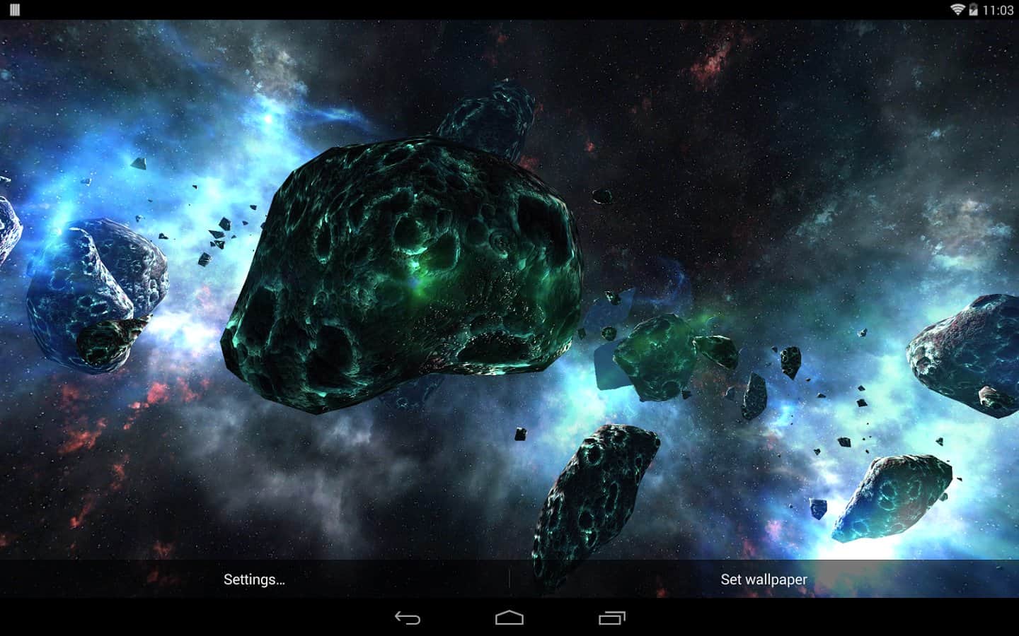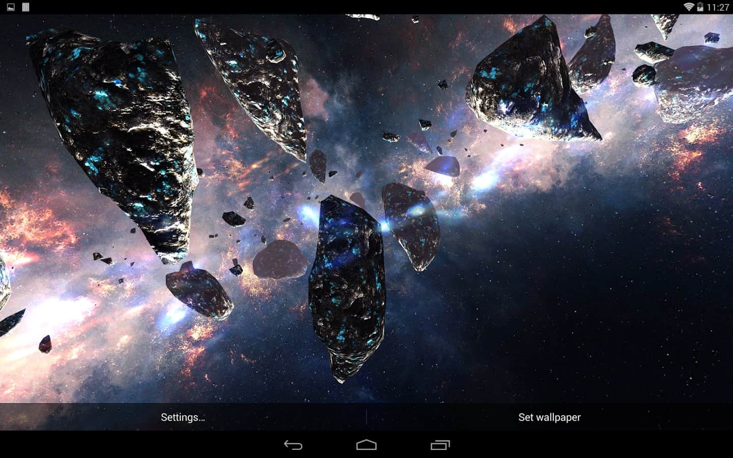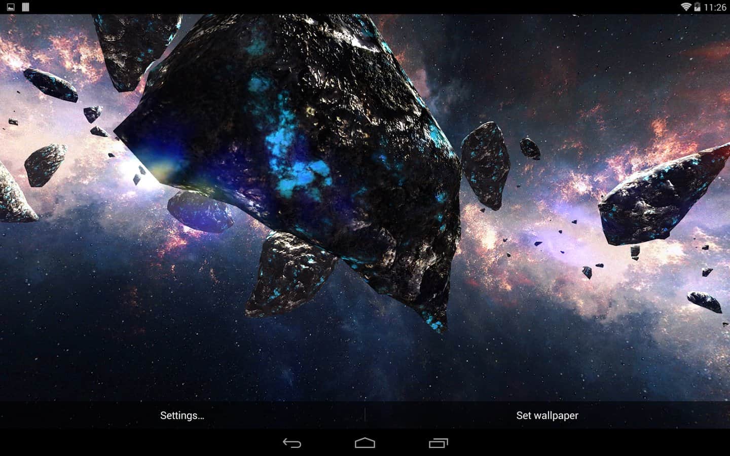 Asteroids Pack – шикарные живые обои для вашего андроид устройства, которые перенесут вас в поток астероидов космического пространства. Все выглядит достаточно эффектно и реалистично. Обои содержат динамическую камеру, большое количество видов 3D астероидов, различные настройки, с помощью которых можно задать фон, свет, ауру пространства. Приятных путешествий!