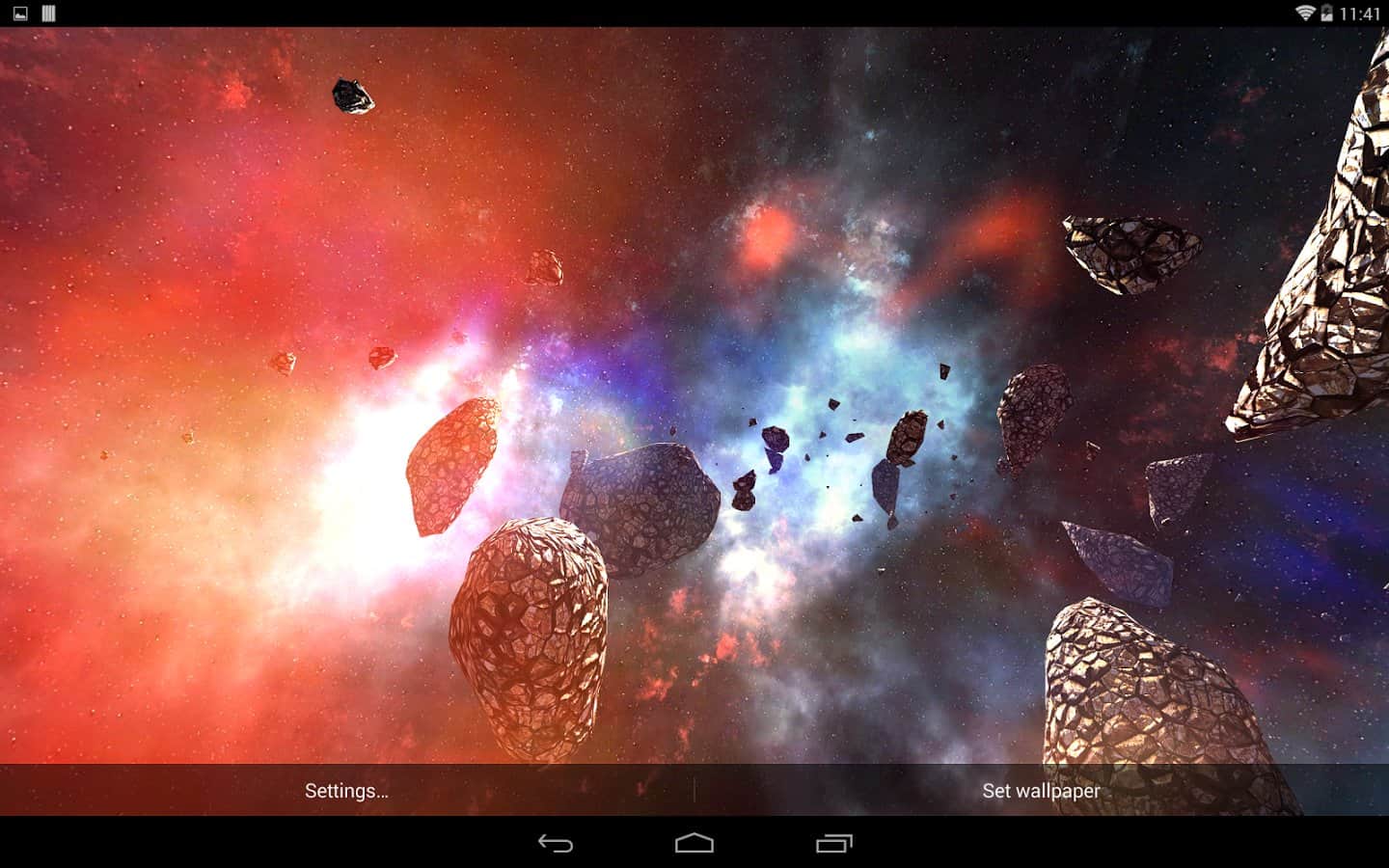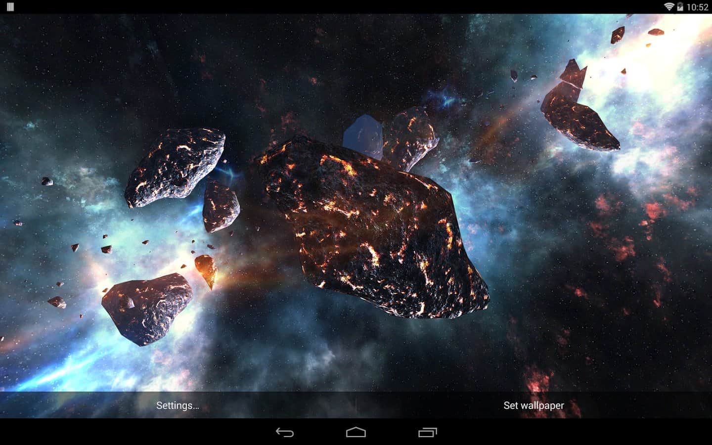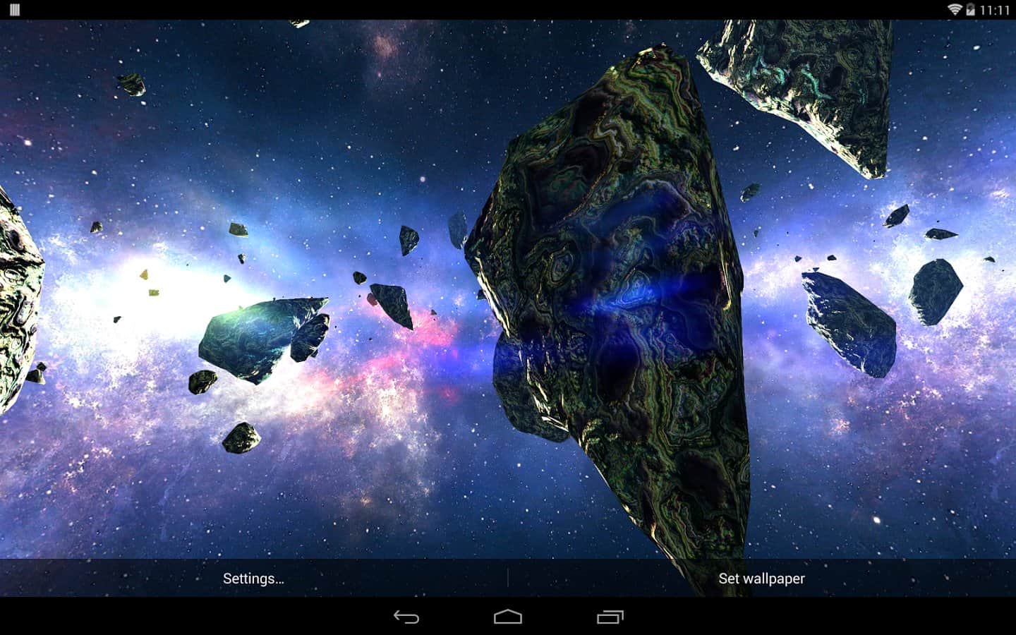 Asteroids Pack – шикарные живые обои для вашего андроид устройства, которые перенесут вас в поток астероидов космического пространства. Все выглядит достаточно эффектно и реалистично. Обои содержат динамическую камеру, большое количество видов 3D астероидов, различные настройки, с помощью которых можно задать фон, свет, ауру пространства. Приятных путешествий!