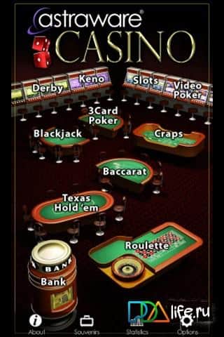 Astraware Casino - испытайте свою удачу с коллекцией самых популярных игр казино для Bada в одной упаковке! Наслаждайтесь всем, что есть в реальном казино на вашем смартфоне, не теряя при этом денег и нервов! В Astraware Casino вошло 11 самых популярных игр в казино по всему миру, включая Texas Hold'Em Poker, рулетку, игровые автоматы, блэкджек и другие.