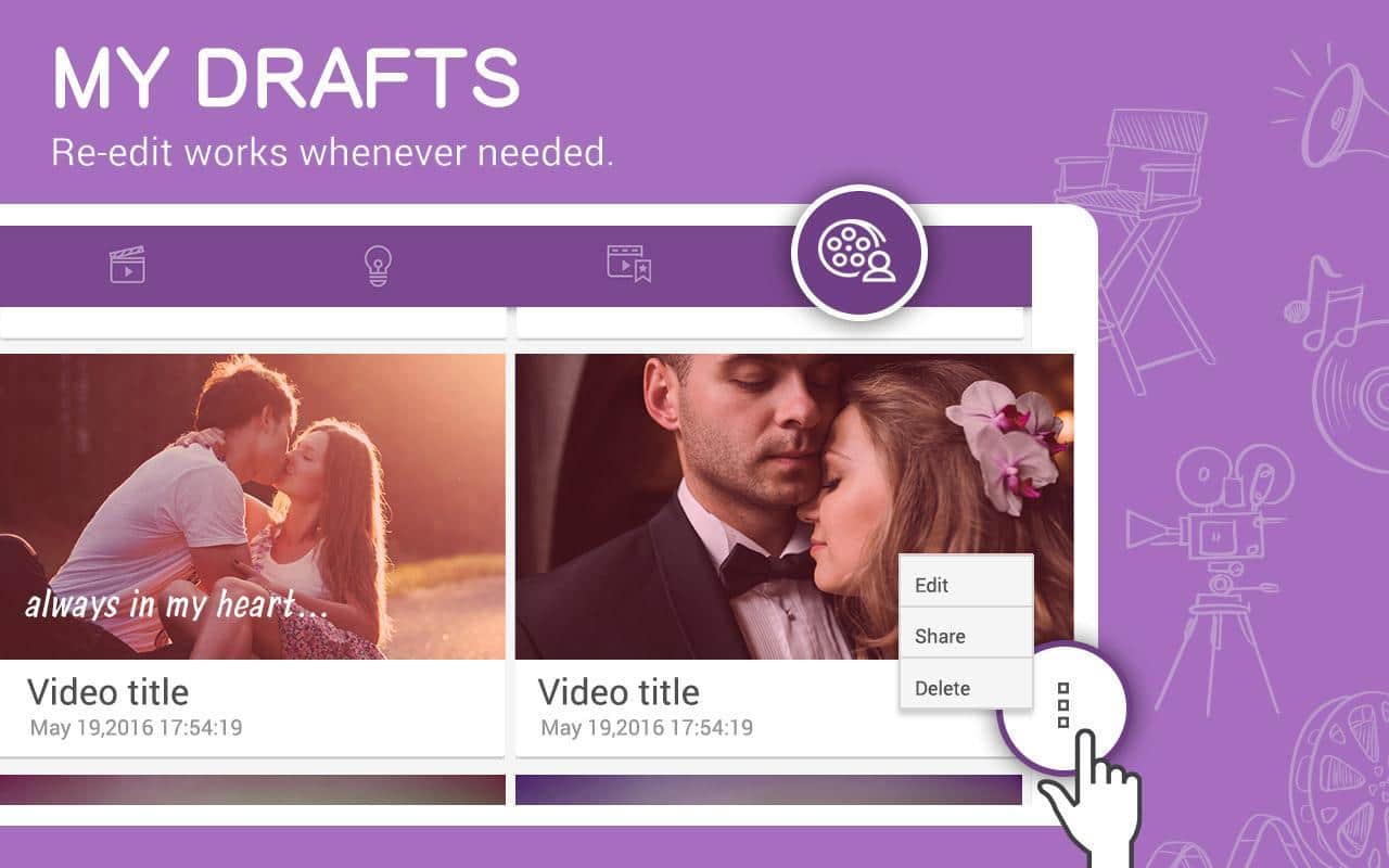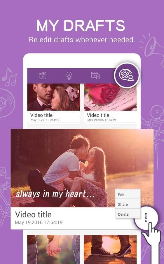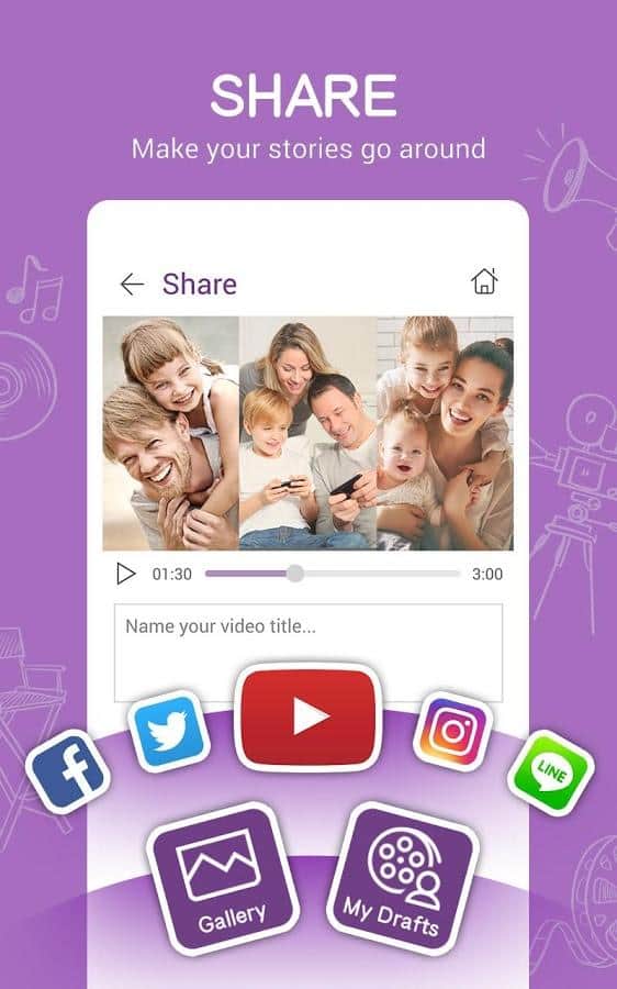 Фотографії для роликів можна додавати не тільки з пам'яті телефону, але і з хмарного сховища. Збережене відео можна відразу залити на YouTube, без проблем поділитися їм в улюблених соц. мережах або відправити адресату будь-яким іншим способом — будь-плеєр прочитає вашу творчість без проблем.