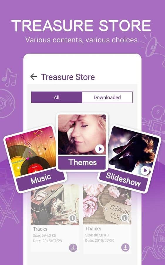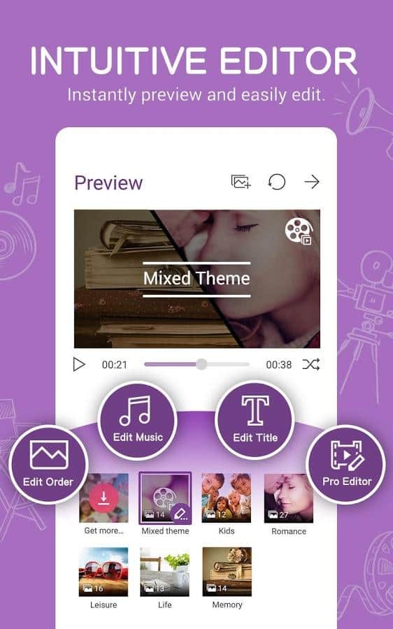 Дана програма дозволяє створювати з ваших фотографій невеликі відеокліпи, причому робити це максимально просто. Для оформлення свого відео можна використовувати вбудовані теми та ефекти а також додавати музичний супровід. Якщо знадобиться, передбачені субтитри.