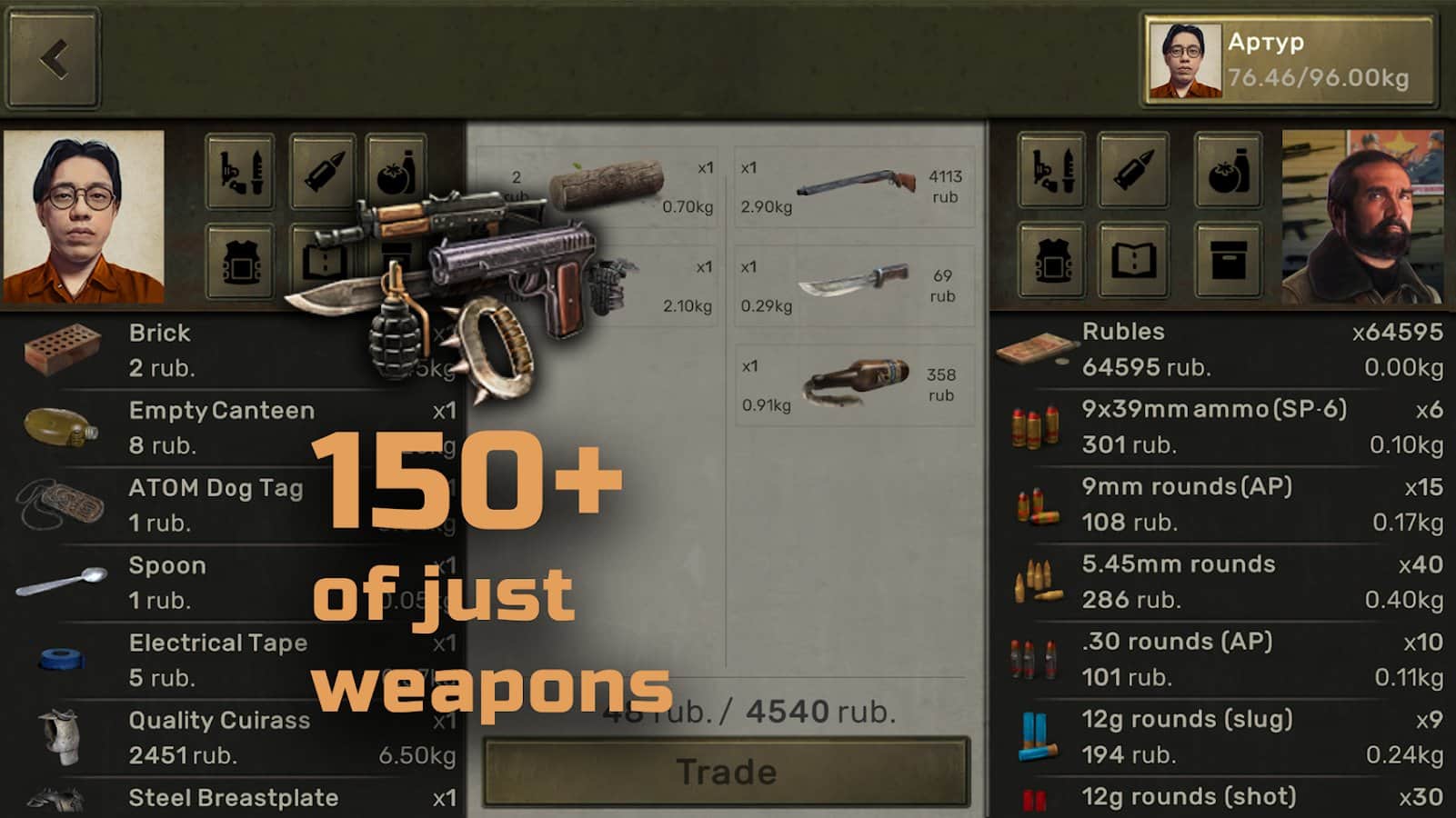 Захоплюючий ігровий процес на різних локаціях: познайомся з побутом інших вижили у відбудованому з попелу старого світу поселенні, відвідай поля і ліси, наводненные небезпечними мутантами, кинь виклик довоєнним секретів підземного бункера... або просто займися риболовлею біля мальовничого ставка.