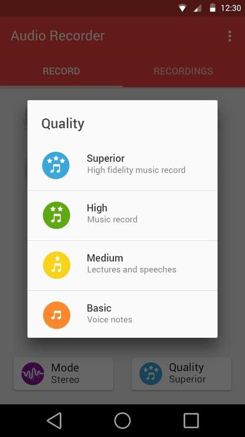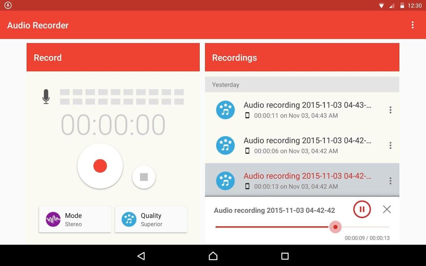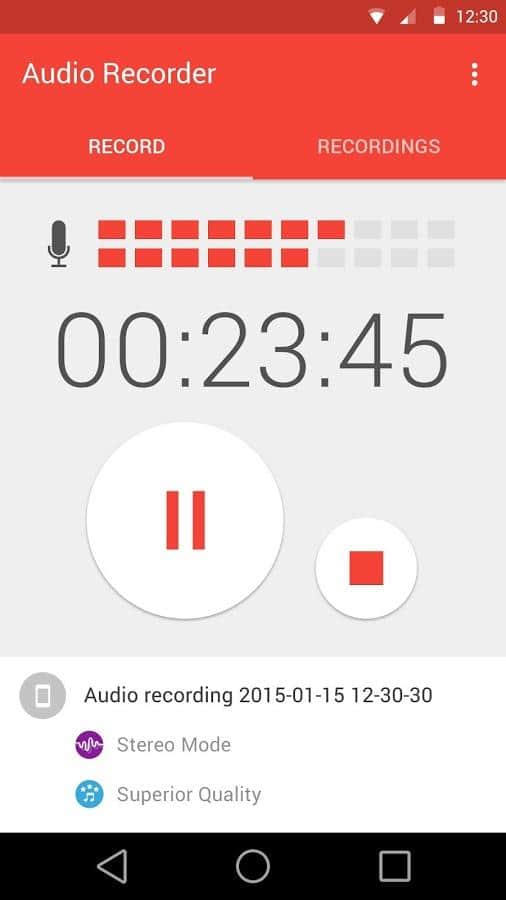 Цей диктофон встиг себе добре зарекомендувати на смартфонах Sony, але також він доступний і на пристроях інших виробників. У додатку можна вибирати, яке якість голосу і музики ви хочете отримати, а також вибрати стерео або моно формат запису, є вбудований шумодав. Запис можна не тільки зупиняти, але і ставити на паузу, а потім відновлювати. Звідси ж можна прослухати наявні доріжки і при необхідності відредагувати їх. Усі записи зберігаються у форматі wav.