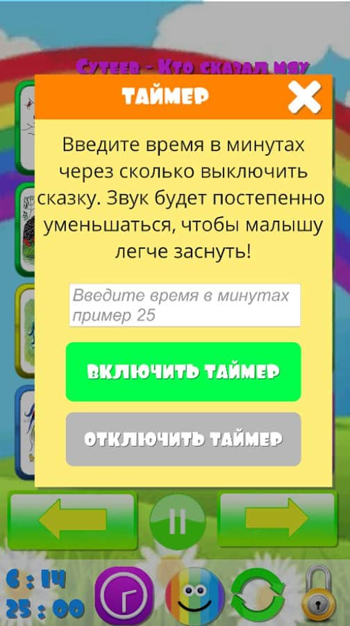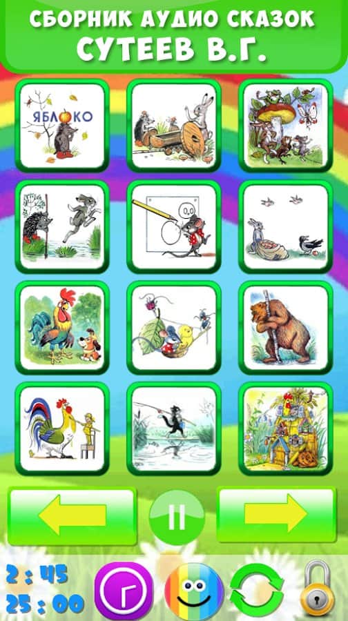 Програма "аудіоказки та аудіокниги Сутєєва для дітей" допоможуть вам і вашій дитині зануритися в чарівний світ яскравих персонажів, вражень, фантазії і динамічного сюжету. Казки не тільки розвивають уяву, але і дозволять дитині швидше заснути вночі.