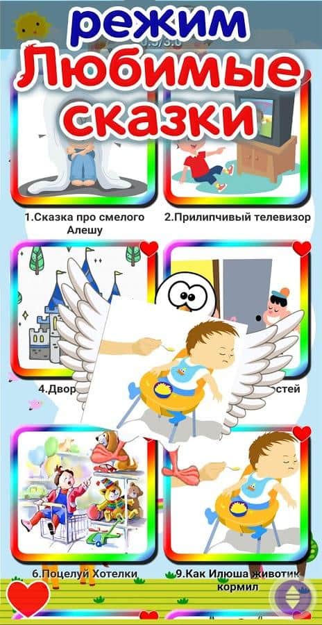 Особливості: Безкоштовне використання; прослуховування в режимі оффлайн; розвиток таких якостей особистості, як доброта, чесність, взаємодопомога і виручка, Емпатія; казки вчать бути сміливим, знаходити рішення у важких ситуаціях, відрізняти добро від зла; наявність таймера сну; велика база казок для дітей до 6 років;