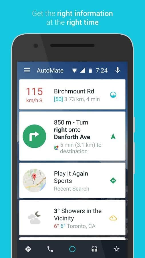 AutoMate - Car Dashboard - Зручний лаунчер для тих хто часто за кермом. Це додаток замінить ваш стандартний робочий стіл і зробить його більш практичним, якщо в даний момент ви знаходитесь за кермом автомобіля. У ньому ви зможете використовувати тільки основні функції, а саме gps, виклики, годинник і прогноз погоди. Але якщо стандартних функцій вам недостатньо, то ви зможете вручну додати або прибрати не потрібні вам функції. Зручний інтерфейс дуже спростить управління смартфоном, під час водіння.