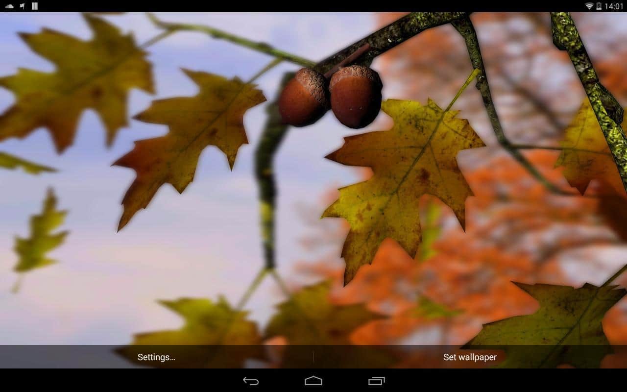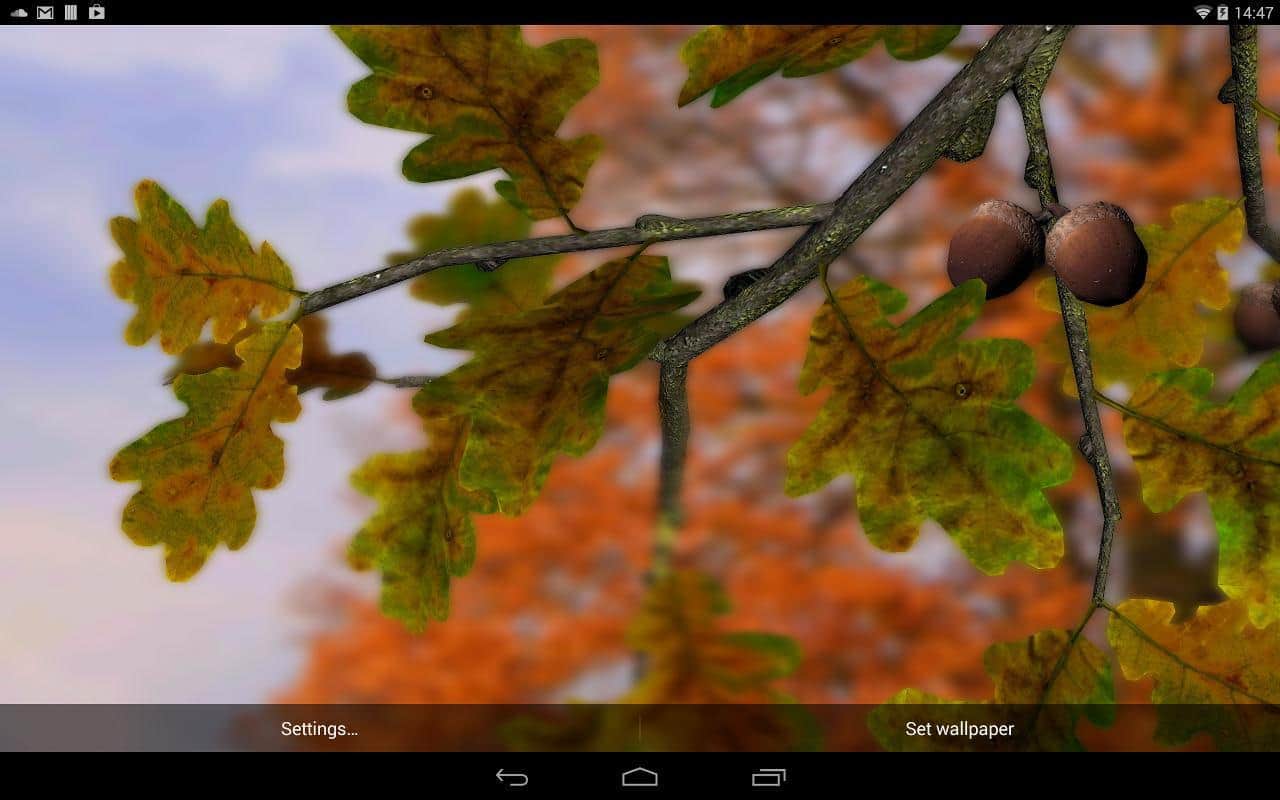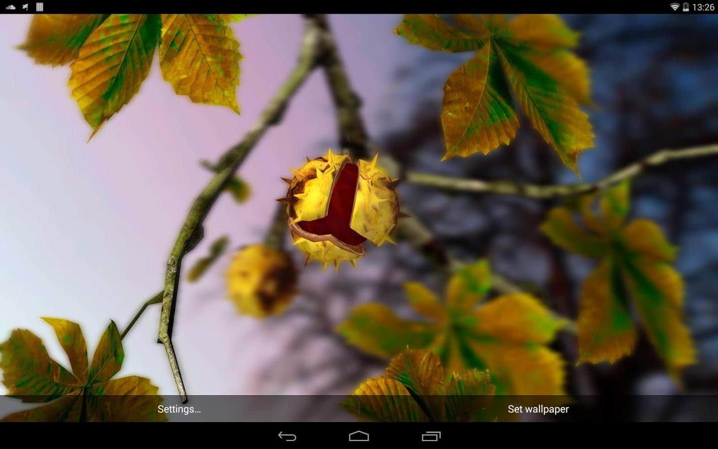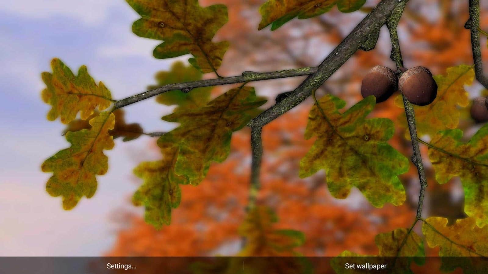Autumn Leaves in HD Gyro 3D XL - прекрасні живі шпалери з 3D-ефектом паралакса від розробника Alexander Kettler. Якісно виконані осінні сцени, плавна анімація, великий вибір фонів. Легкий вітерець перебирає листя дерев, часом зриваючи один лист і плавно опускаючи його на землю. Красиво, яскраво і реалістично! Викачуємо.