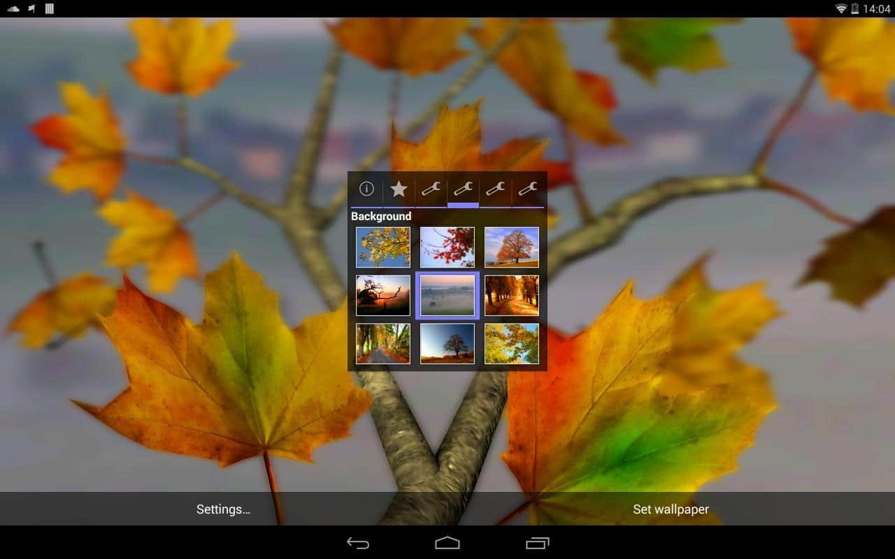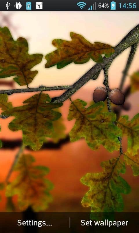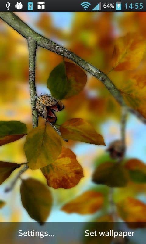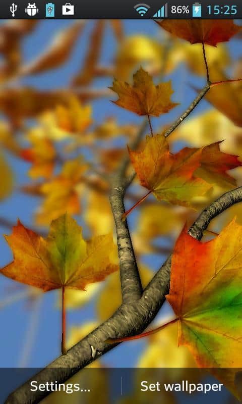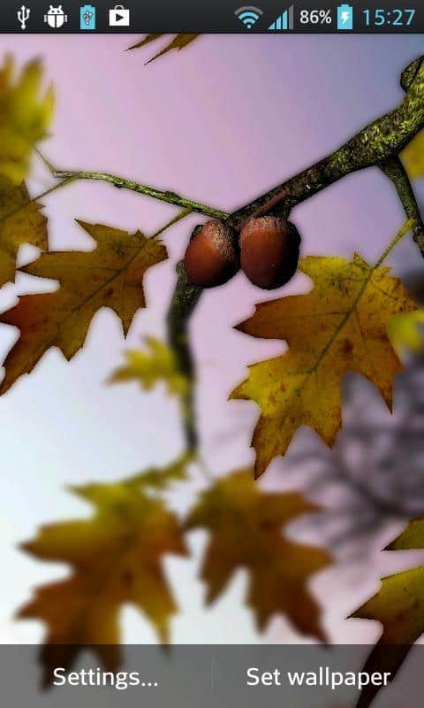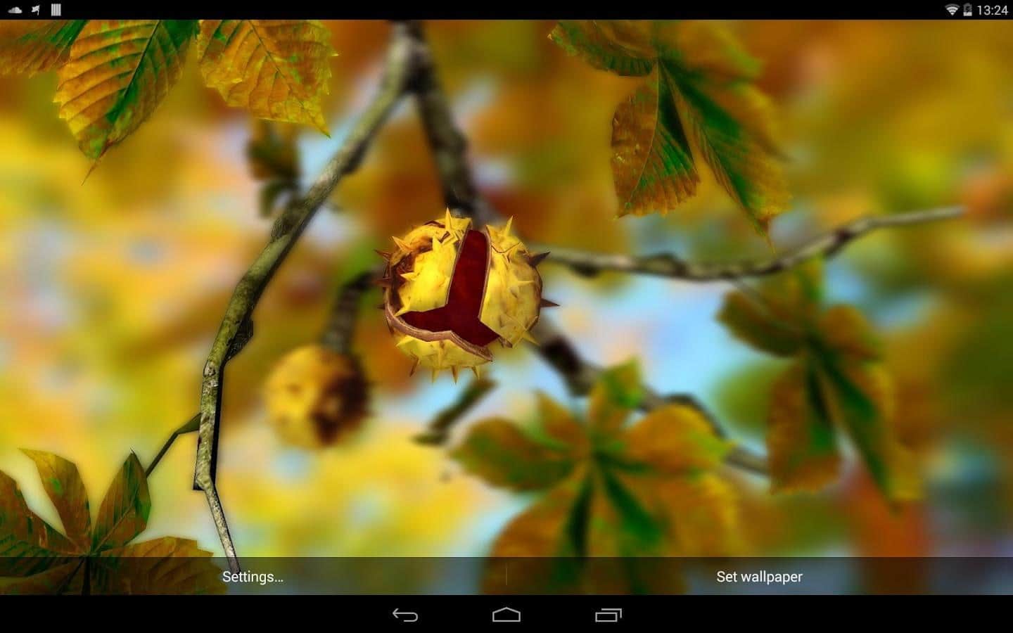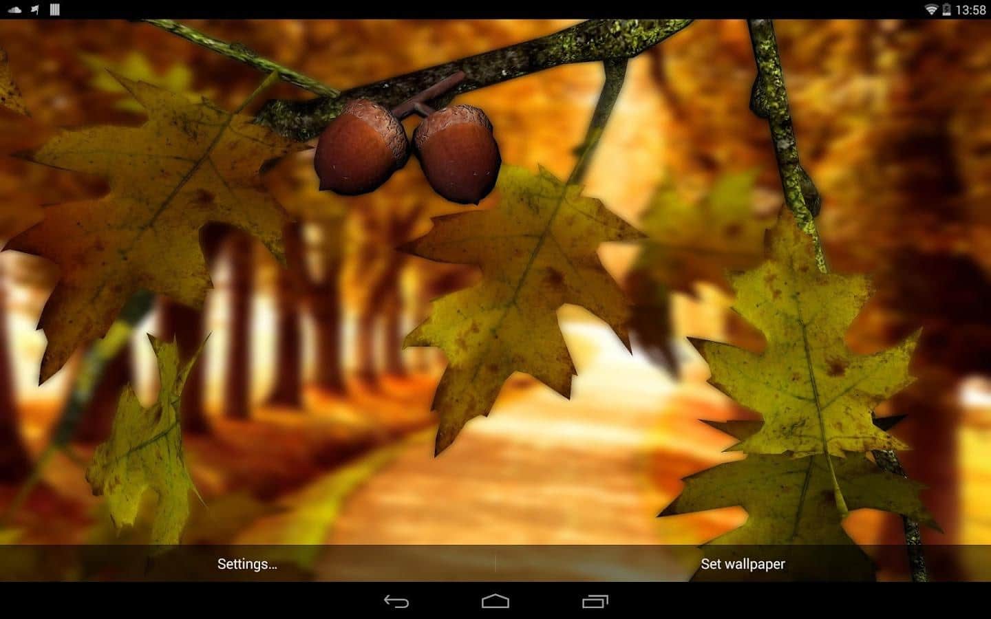 Autumn Leaves in HD Gyro 3D XL - прекрасні живі шпалери з 3D-ефектом паралакса від розробника Alexander Kettler. Якісно виконані осінні сцени, плавна анімація, великий вибір фонів. Легкий вітерець перебирає листя дерев, часом зриваючи один лист і плавно опускаючи його на землю. Красиво, яскраво і реалістично! Викачуємо.