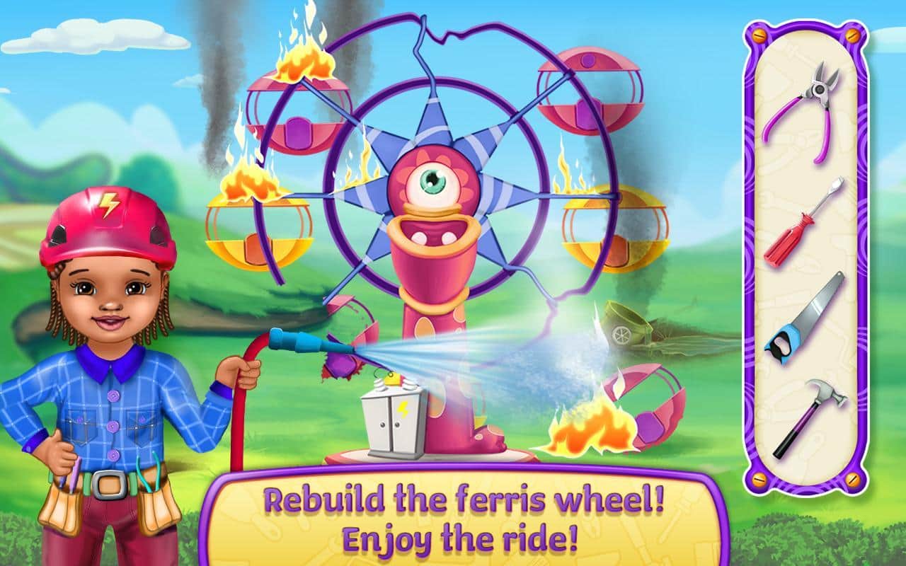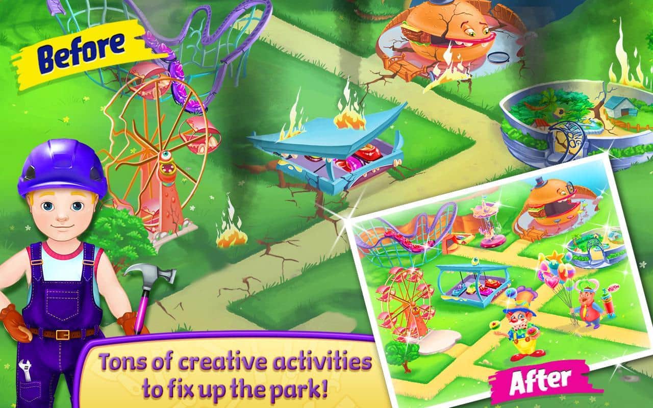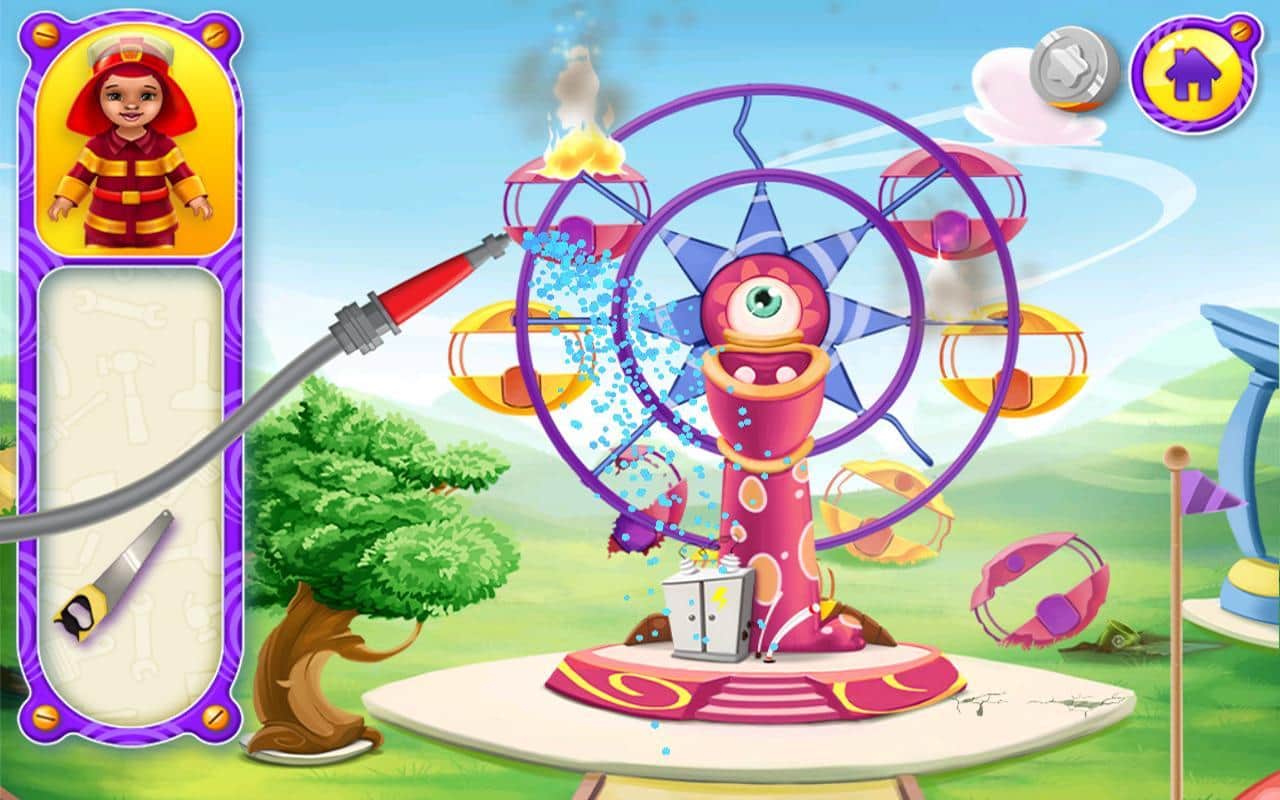 Baby Heroes: Amusement Park / Малюки-герої: парк розваг - Малюки - герої знову з нами! Але у них особливе завдання - врятувати парк розваг після того, як він був зруйнований страшним землетрусом. Допоможіть цим малюкам, які мають 6 різних професій: пожежника, будівельника, садівника, електрика, слюсаря та прибиральника. Отстраивайте американські гірки, лагодите колесо огляду і електромобілі і багато іншого. Відкрийте ларьок з продажу солодкої вати і хот - догів, поверніть тварин в дитячий зоопарк і допоможіть в бюро знахідок. Зробіть все, щоб врятувати парк розваг! Також спробуйте різні міні - ігри. Зберіть монети в додатку і заробіть класні призи в магазині подарунків. Поверніть веселощі всім дітям!