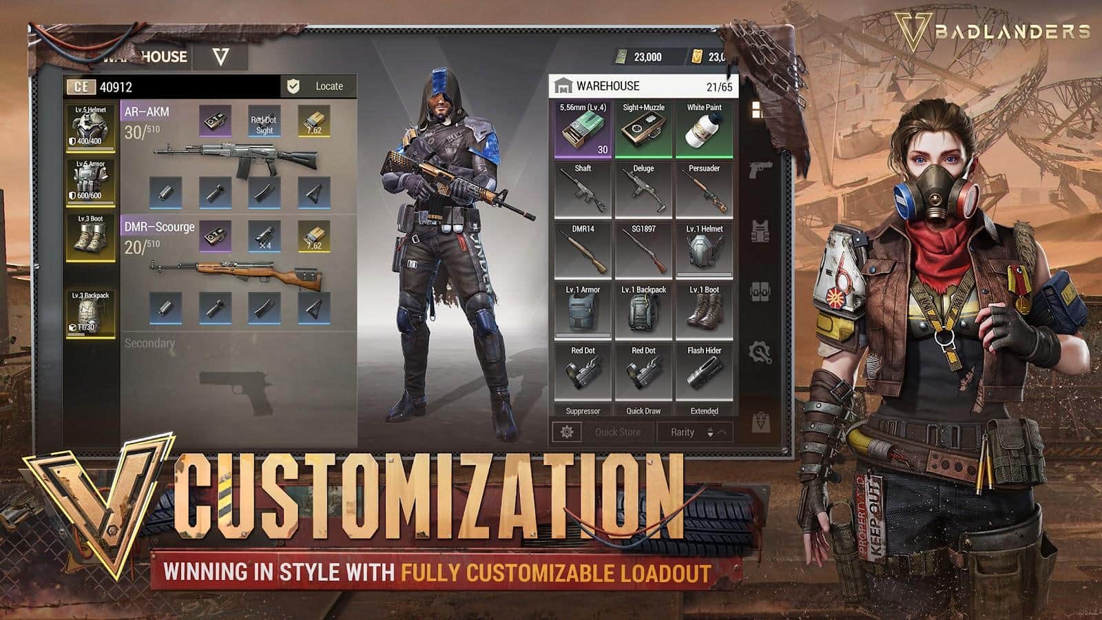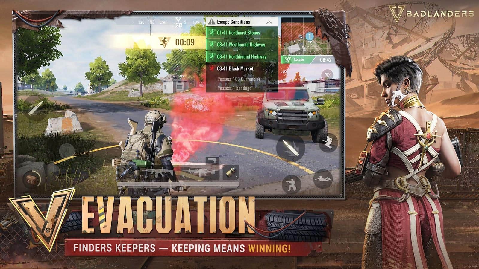 Тут, на руїнах колись великої цивілізації, бэдлендеры борються за скарби і славу. Святилище на Червоному пляжі колись було найбільш передовим у світі збройовим технологіями, але перед обличчям стихійних лих воно стало маяком для збереження науки та технологій для всього людства. Однак це тривало недовго, оскільки вибухнула війна і план збереження звалився. Єдине, що залишилося на цьому кривавому пляжі - це величезні руїни, конкуруючі падальщики і нескінченні можливості. Готуйтеся і приготуйтеся увійти в гарячу зону багатств і небезпек. На полі битви виходять 25 бэдлендеров, у кожного з яких своя мета. Беріть ворогів у чоло, щоб позбавити їх видобутку, або повільно збільшуйте арсенал зі скринь, розкиданих по карті. Тут одні стають багатими відразу, а інші втрачають все. Як підвищити свої шанси на виживання, щоб отримати більше здобичі? Поліпшення вашого спорядження може бути гарною ідеєю. Зброя, обладунки, гранати. Всі поліпшення можна принести на полі бою. Але будьте обережні: чим більше у вас спорядження, тим більше ви привернете увагу інших бэдлендеров, які захочуть його забрати у вас.