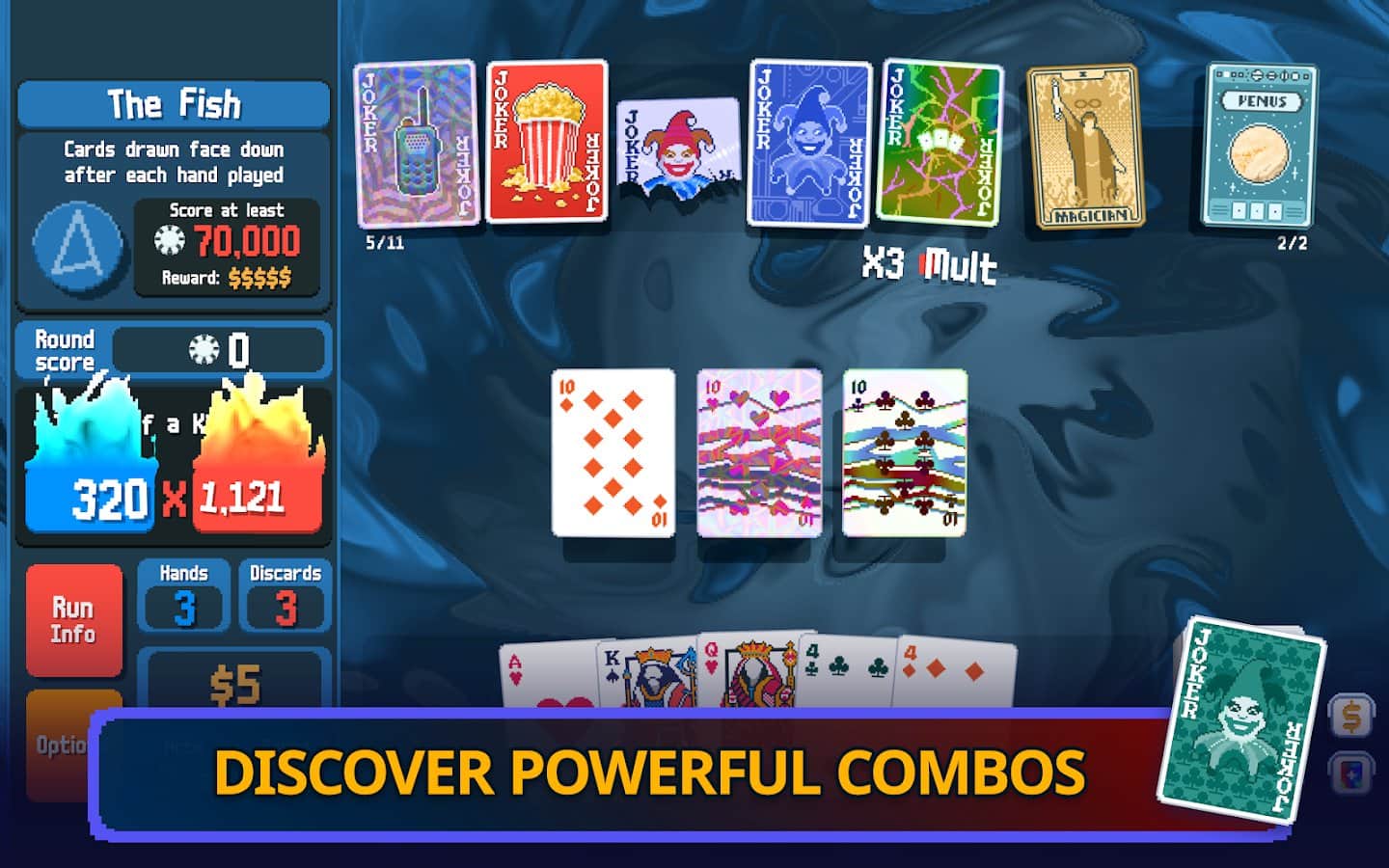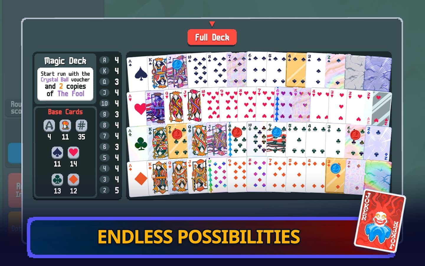 Ласкаво просимо до офіційної мобільної гри Balatro! Ваше завдання - перемогти босса-блайнда, збираючи потужні покерні комбінації. Відкривайте нових джокерів, які змінять хід гри, і створюйте вражаючі комбо! Заробляйте достатньо фішок, щоб перемогти сильних босів, і знаходьте приховані бонусні комбінації та колоди під час гри. Приєднуйтеся до гри Balatro і випробуйте всю різноманітність стратегій та задоволення, яке вона пропонує!