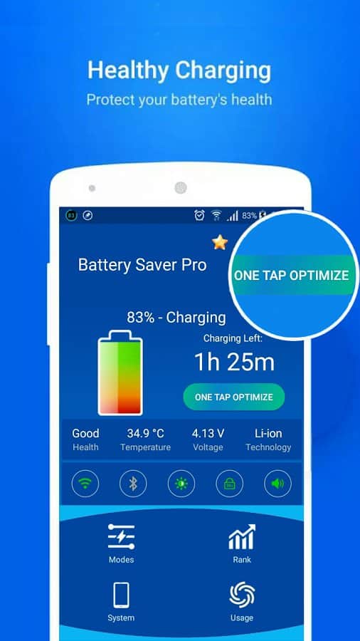 Battery Saver Pro - Мало просто зберегти заряд батареї, потрібно ще і продовжити її життя. І зробити це можна завдяки оптимізації споживання електроенергії. Не багато додаток можуть похвалитися якісною оптимізацією і зручним інтерфейсом, і за часту просто заважають роботі батареї. Це ж додаток насправді зможе оптимізувати роботу і енергоспоживання харчування вашої батареї, тим самим знизить навантаження на неї і вона прослужить вам довше.