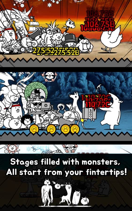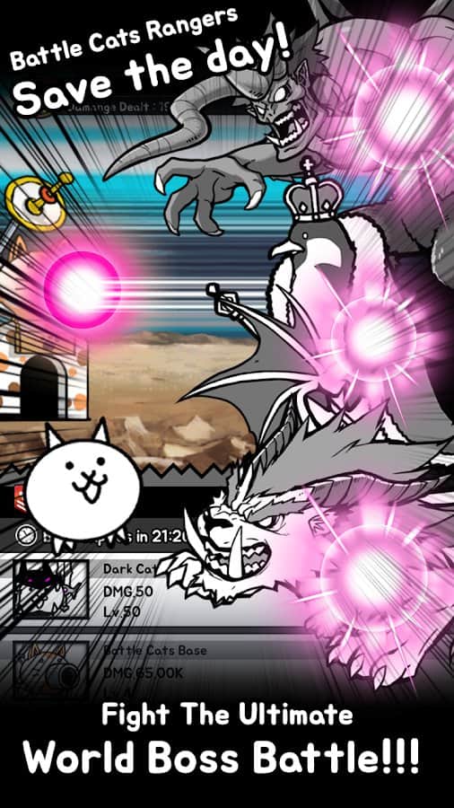 Battle Cats Rangers – клікер на андроїд, де ви будете керувати милими кішками. На наших кішок відкрили полювання собаки, птахи і небезпечні монстри, але кішки теж можуть постояти за себе, використовуючи в бою гострі кігті, ікла та унікальні здібності. Натискайте як можна частіше на екран свого телефону або планшета і атакуйте жахливих ворогів. Проявіть всю свою спритність і кмітливість, щоб перемогти всіх ворогів. Поповнюйте свою команду кішок новими персонажами, кожен з яких володіє унікальними уміннями. Покращуйте своїх героїв, наділяючи їх здібностями і різними вміннями. По ходу гри вирішуйте складні задачки і головоломки, а також збирайте бонуси.