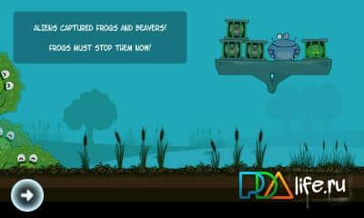 Battle Frogging II The Invasion-ця чудова гра на bada для любителів гри Angry Birds. Інопланетні загарбники прилетіли на болота де живуть бобри і жаби. На цей раз можна грати за будь-яку з трьох сторін.