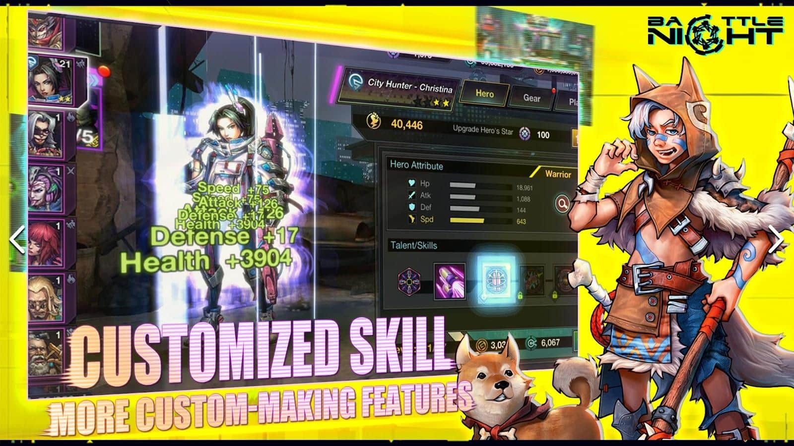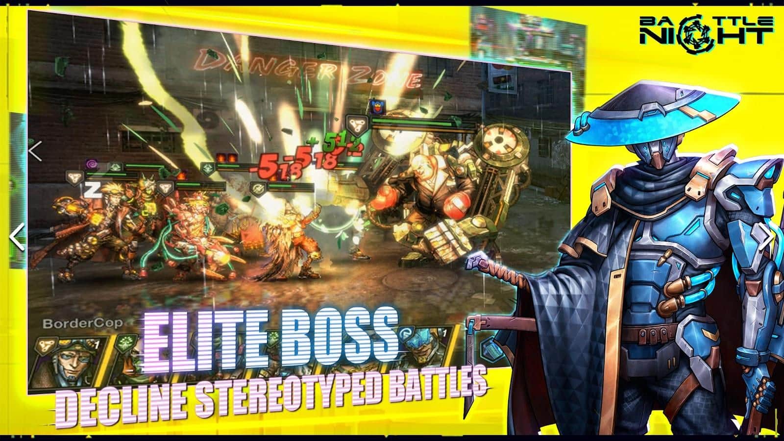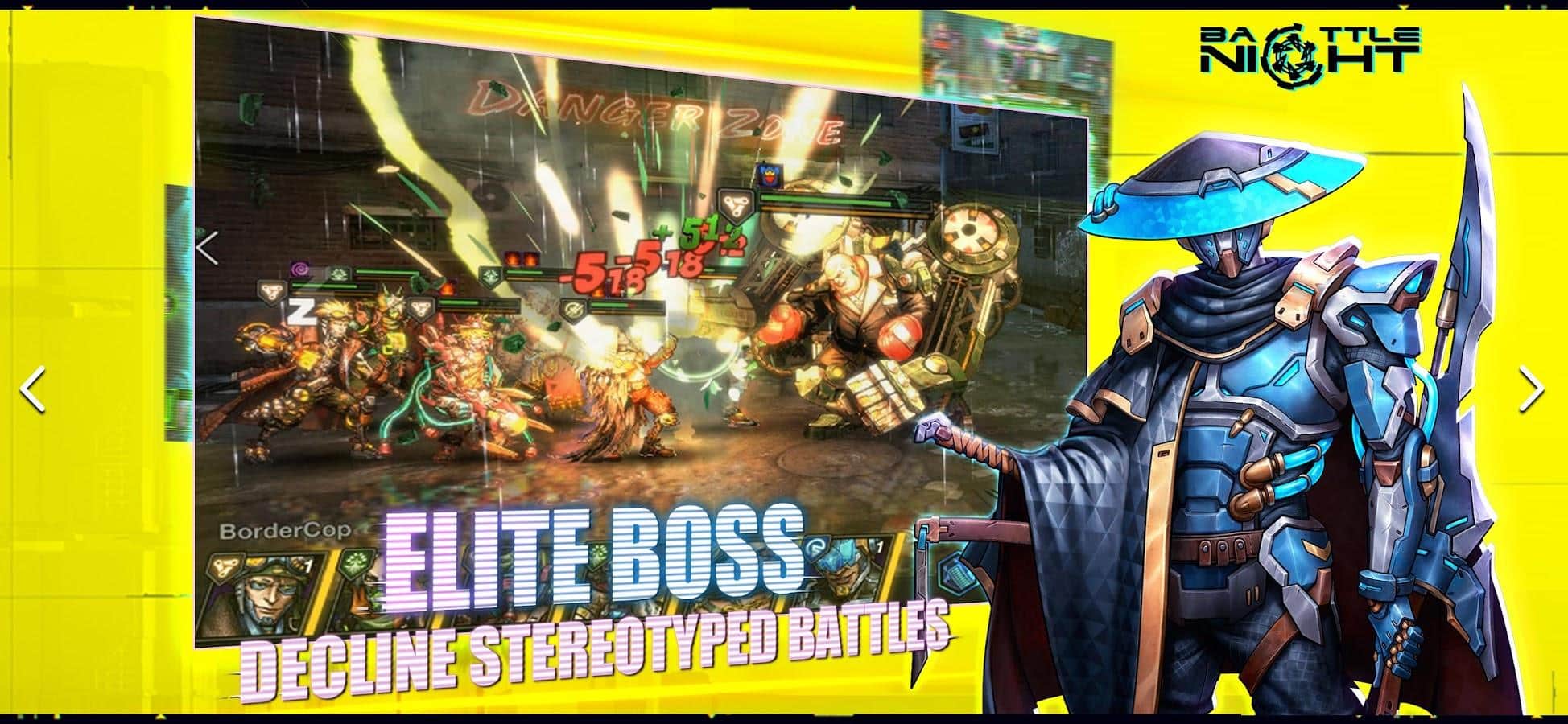 Battle Night: Cyber Squad-Idle RPG – 2098 рік, у переддень кінця століття відбуваються важливі події, які визначать майбутню епоху. Люди мирно займаються звичною ежедневщиной, навіть не помічаючи, що на території прикордоння розгорається давній конфлікт згасаючих цивілізацій і новітніх технологій. Прогрес безжалісний, будьте готові встати на одну зі сторін і прийняти участь у конфронтації. Дослідіть вулиці і запам'ятайте міську планування, нейтралізуйте злочинців.