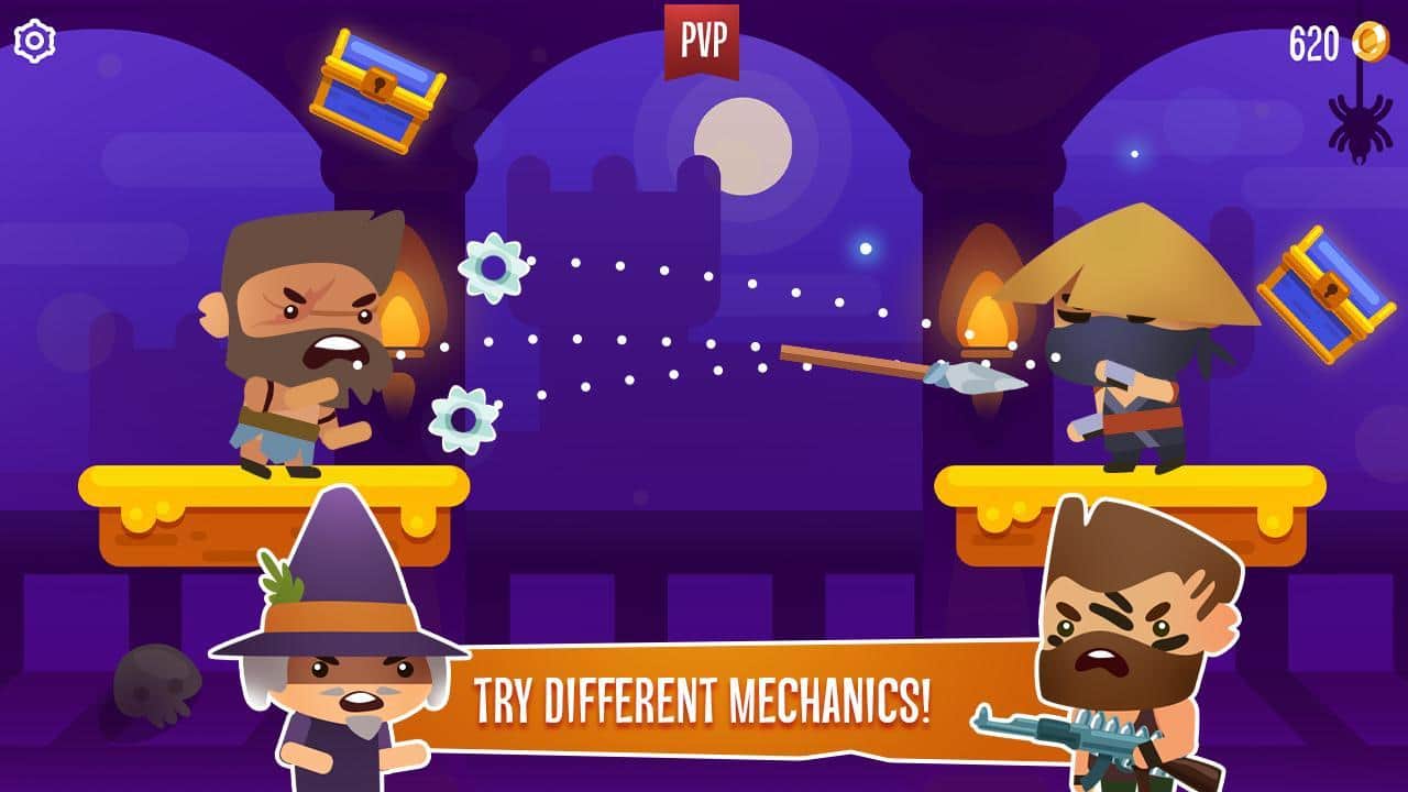 Battlemaster – захоплююча інді гра на андроїд, де ви візьміть участь в захоплюючих дуелях з реальними гравцями. Прийміть участь в баттл змаганні яке буде проходити на одному пристрої. Візьміть під свій контроль героя і кидайте виклик своєму другові беручи участь в перестрілках. Боріться до двох перемог одного гравця в трьох раундах і заробляйте монетки відкриваючи для себе нових героїв і зброю. Покладіться на свою влучність і відмінну реакцію і стріляйте у суперника. Також метьтесь в чарівні скрині, які приховують в собі додаткову зброю і бустери. У цій грі ви будете стріляти з лука, влаштовувати дуелі на револьверах, битви магів і дуелі на мечах.