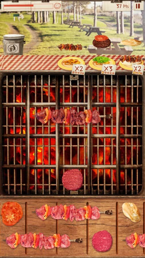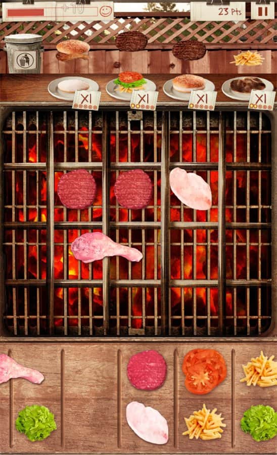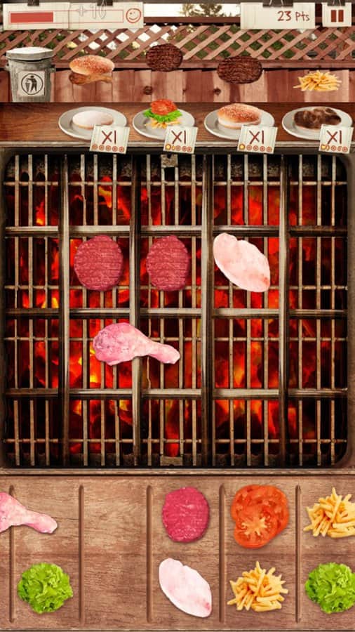 BBQ Frenzy - вкусная аркада для андроид. Почему вкусная? А вот ответьте на вопрос - кто любит шашлычок или же горячие сосиски или что-нибудь еще, вкусно приготовленное на гриле. Пожалуй все, за исключением вегетарианцев. Но и они смогут насладиться всем великолепием готовки, абсолютно не нарушая своих принципов. Выбирайте продукты - от мяса и морепродуктов до овощей и хлеба, далее от вас потребуется сноровка и организаторские способности. Распределите все продукты на гриле, внимательно следите за их готовностью и удовлетворите запросы ваших друзей. Пройдите все зеленые зоны - от парка до пригорода, используйте все виды продуктов, пройдите бонусные миссии и приготовьте блюда по спец рецептам, а также соберите все трофеи кулинара!
