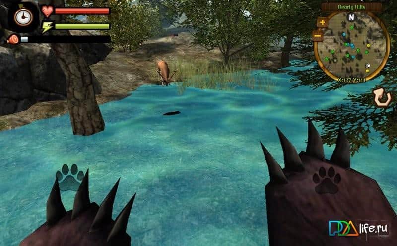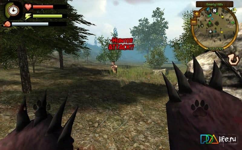 Bear Simulator-захоплюючий симулятор ведмедя на Андроїд. Вам належить грати за ведмедя грізлі, який бродить по лісі і лякає людей. Так само ви можете їх не тільки лякати, але і бити їх. Дуже забавно виглядають розбігаються після пікніка люди. І не забувайте про мисливців! Якщо один з них зустріне вас, ховайтеся! Інакше він вас підстрелить. Спробуйте підібратися до нього, використовуючи для укриття камені і дерева.