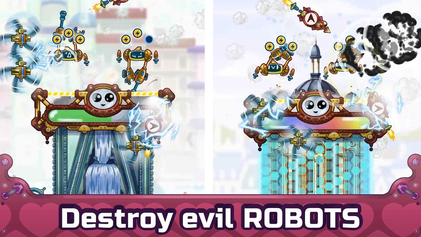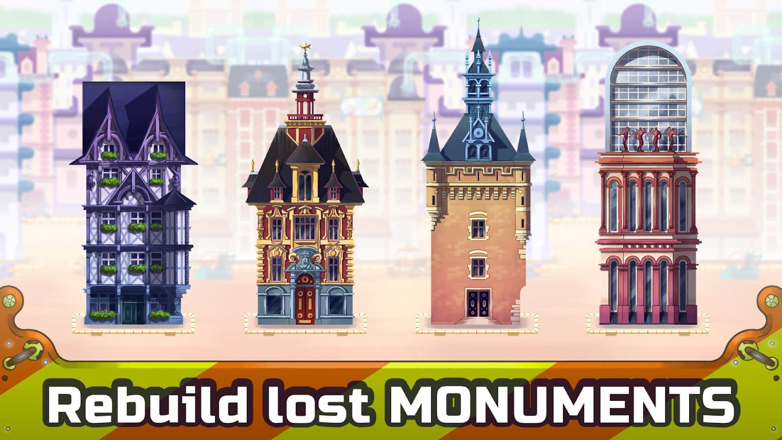 Натискайте на музичні біти і побудуйте величезна кількість старих будівель в різних містах всього світу. Захищайтеся від роботів, які хочуть зруйнувати ваші будівлі. Прокачайте музичні здібності: сприймайте популярну музику на слух, при цьому заплющуючи очі. Таких архітекторів, як ви більше не знайти, тому максимально правильно ставте завдання роботів-помічників і допомагайте їм. Якщо ця гра здасться занадто легкою, чи зможете ви отримати 196 медалей за 64 рівня, а також битися з головним босом?